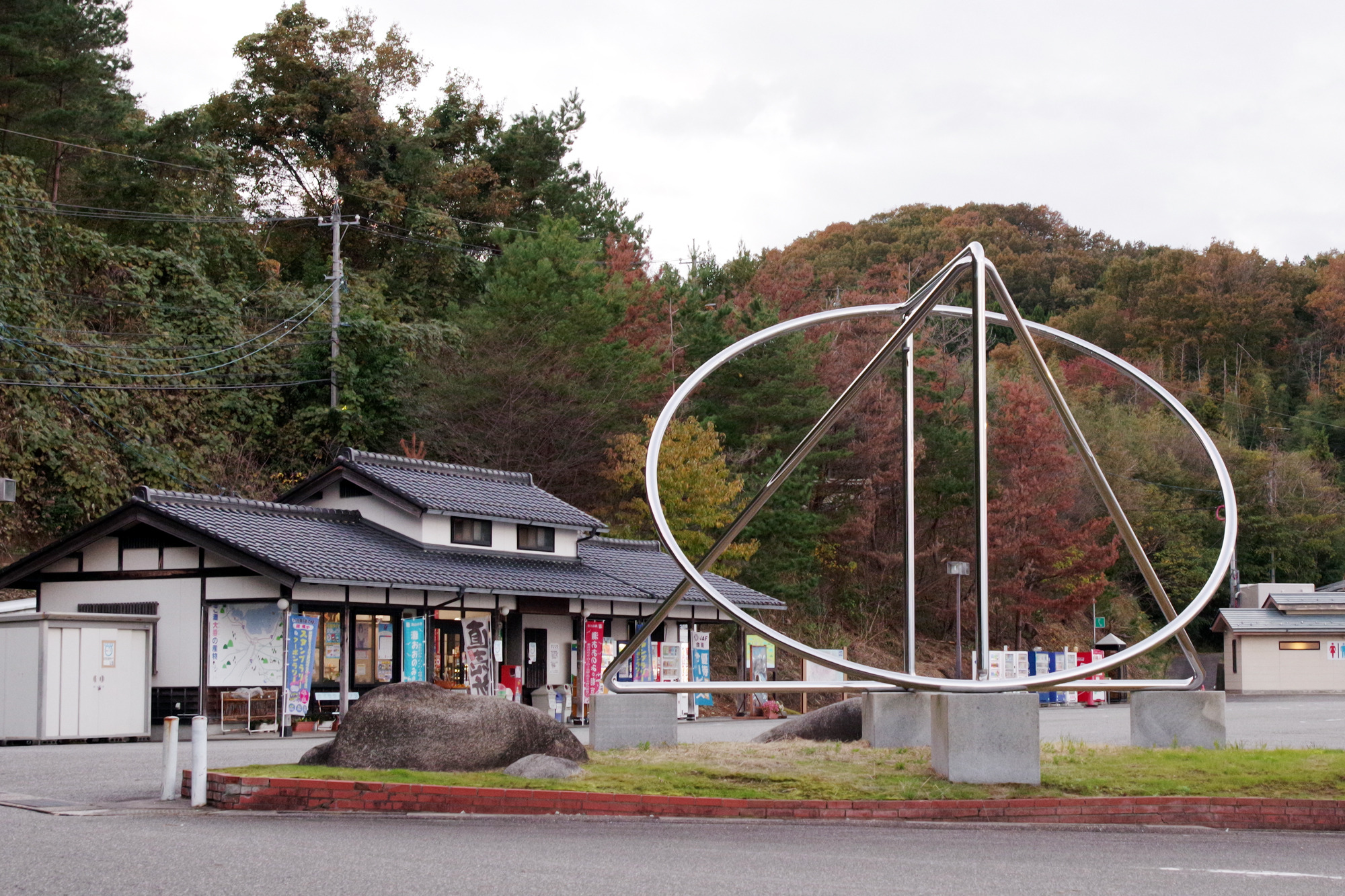 この道の駅のシンボルにもなっている、敷地に出迎えるように立つモニュメントは、七尾(NANAO)の「N」「A」「O」を組み合わせた幾何学図形なのだとか。
