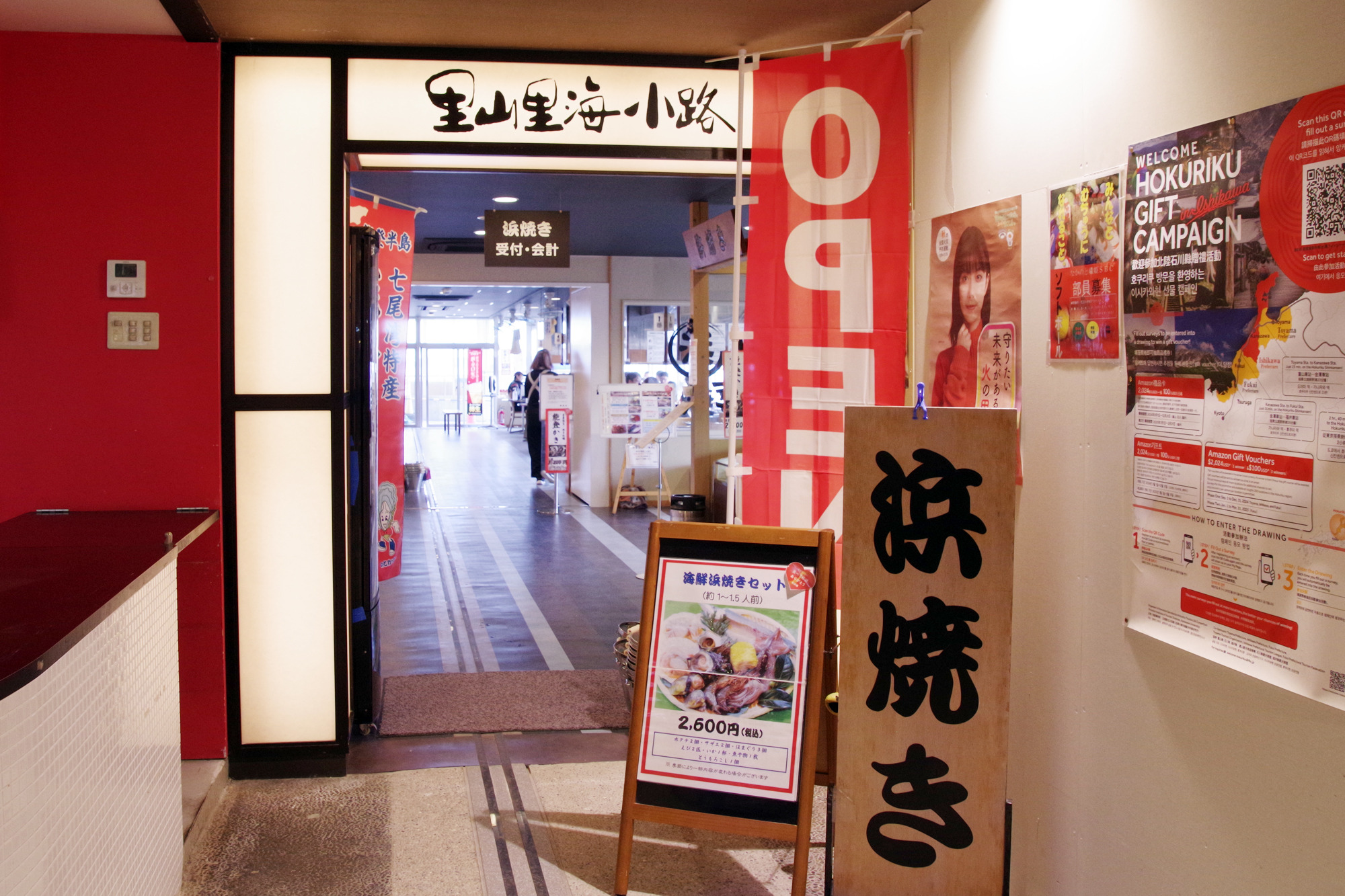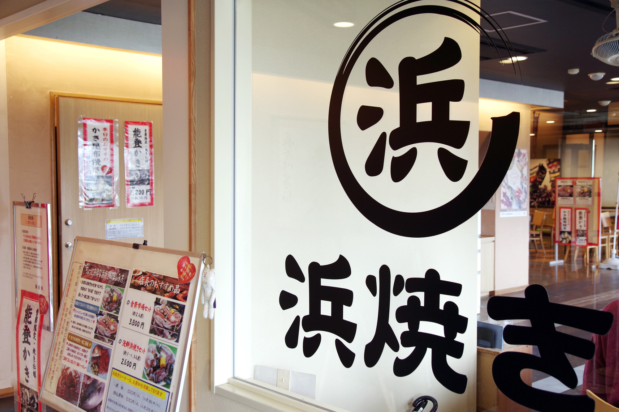 窓の向こうに見える七尾港を眺めながら、暖かい屋内で焼き立ての海鮮を堪能できます。