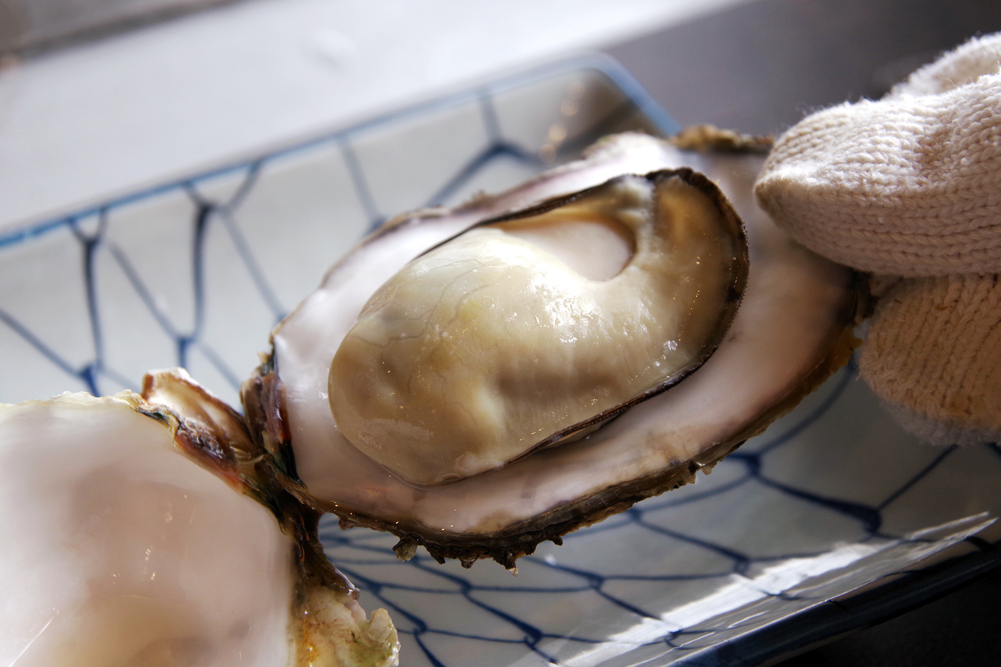 皿に取り、殻を開けて焼き立ての牡蠣をほおばります。大きくてプリップリの身は、七尾の海そのものの味わいでした。