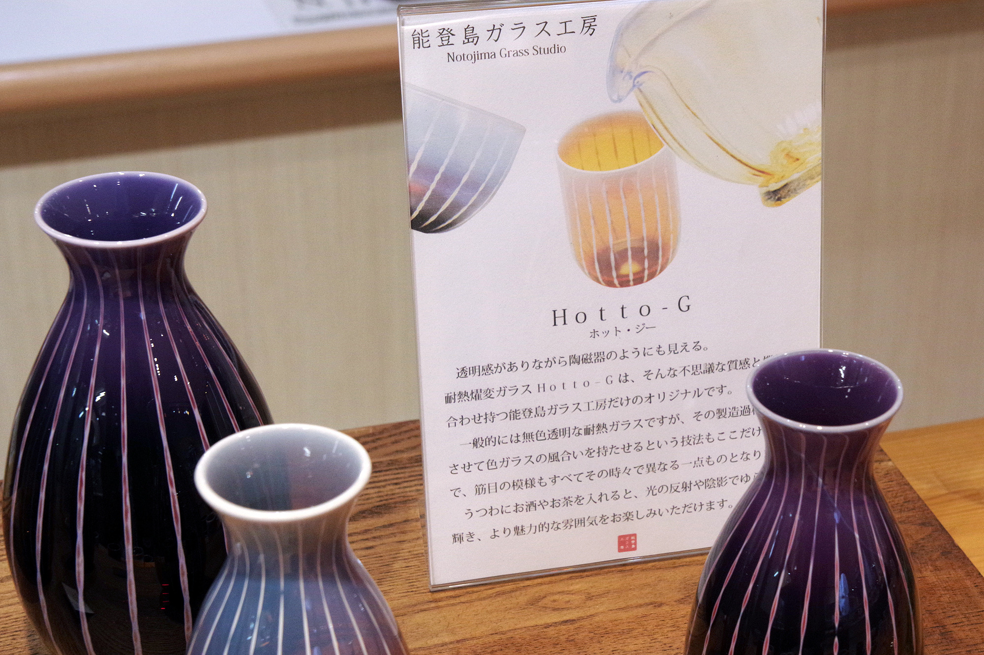 もうひとつ、ここ能登島ガラス工房のオリジナルガラスが、耐熱燿変ガラス「Hotto-G」(ホット・ジー)。