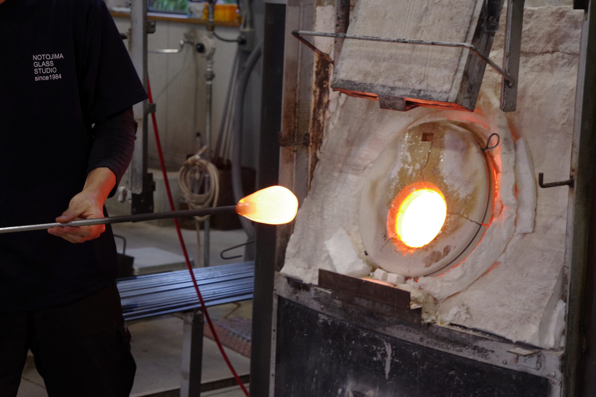 能登島ガラス美術館の目の前にある「能登島ガラス工房」では、目の前でガラス作品を作る様子が見られます。