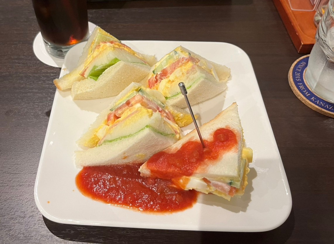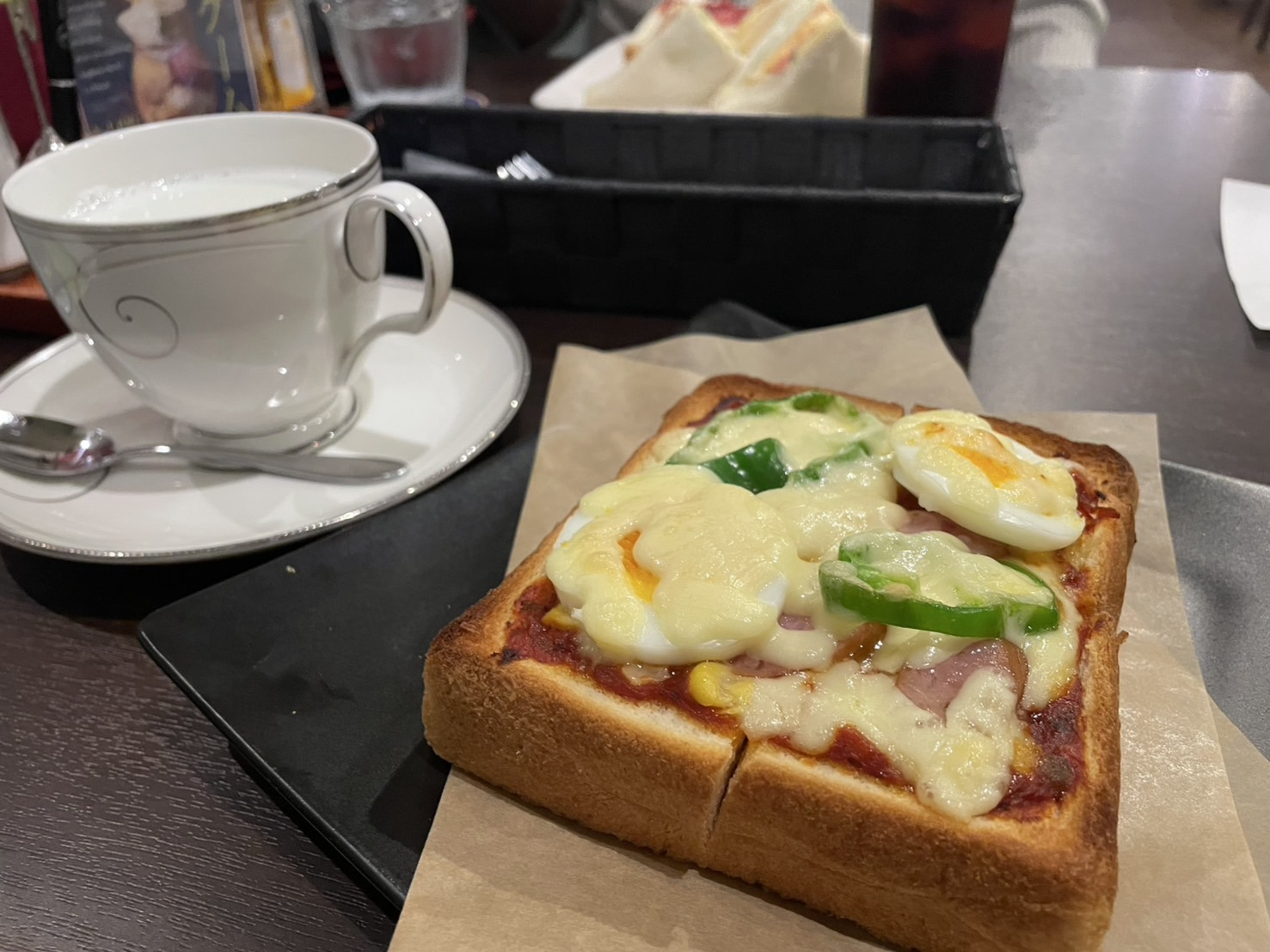 メニューにはすべて推理小説の名前がついています。私が注文したピザトーストは「マリオネットの罠」、サンドイッチは「黒猫の三角」という名前でした。メニュー名にもこだわりが詰まっていて、わくわくしますね!