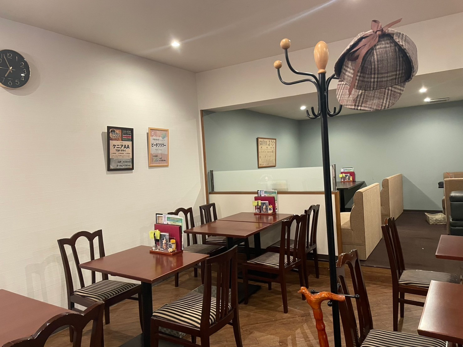 ミステリーとカフェが融合した謎屋珈琲店、店内は落ち着いた雰囲気でゆっくりと謎解きを楽しめます。