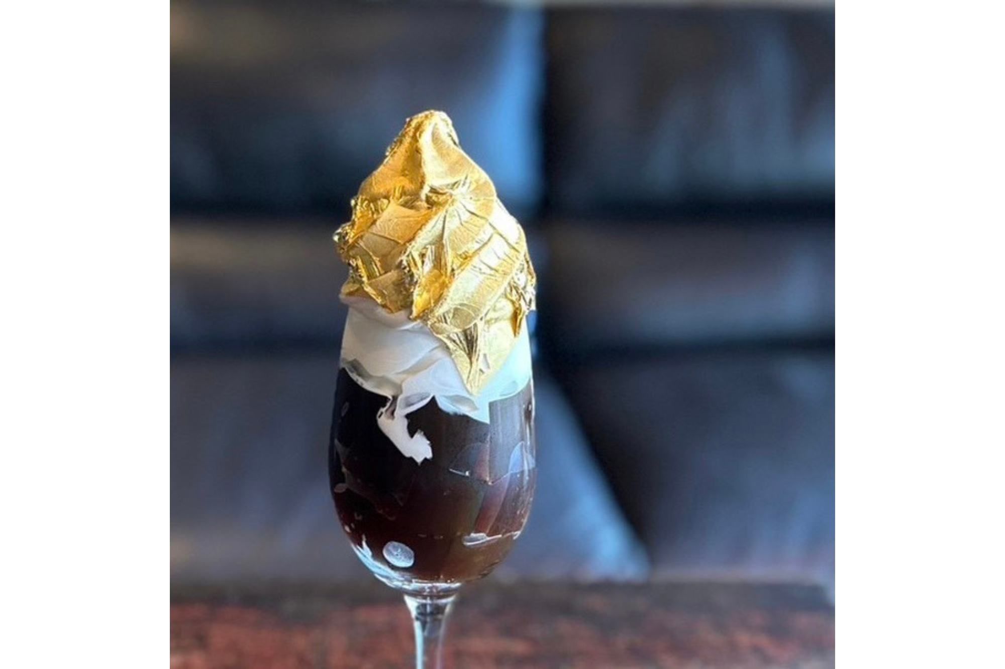 「プレミアム金澤珈琲ゼリー」は、金澤珈琲ゼリーに金箔ソフトをトッピングした贅沢な逸品。金箔で彩られた見た目がとても華やかです。