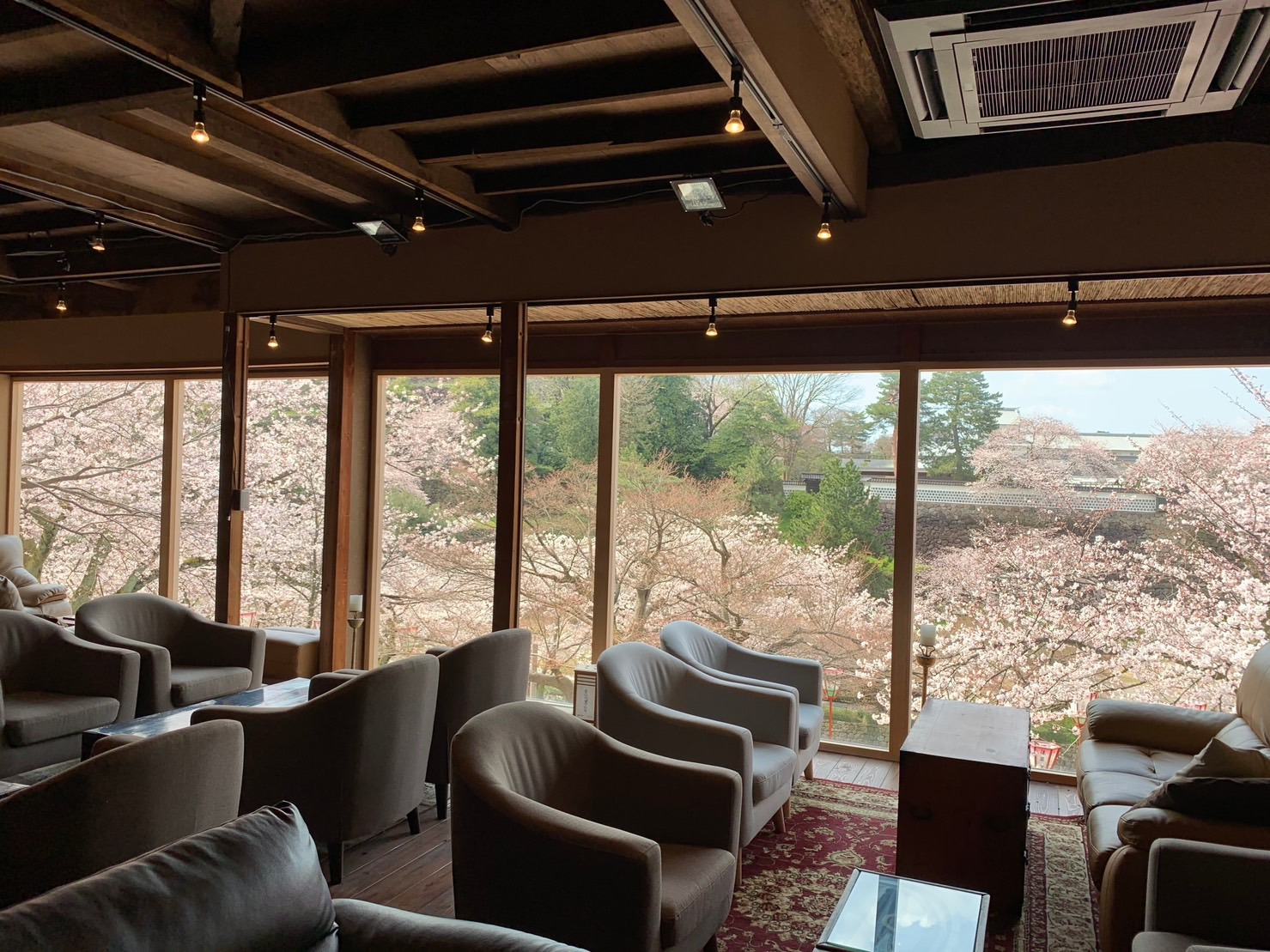 アンティーク調の店内からは、金沢城跡の景色を一望できます。春には桜もきれいに見え、季節によって異なる景色がカフェタイムを素敵に彩ってくれます。兼六園散策のあと、足の疲れを癒す休憩どころとしても最適です。