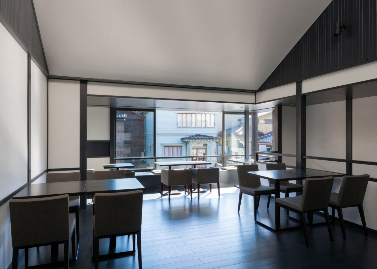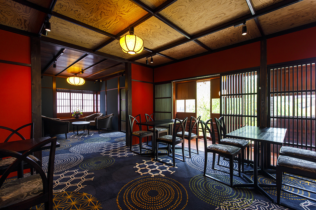 200年の歴史を継承する茶屋建築。ゆったりした空間が広がる店内で、特別感のあるひと時を過ごすことができます。窓からはひがし茶屋街の街並みを眺めることができ、風情あるカフェタイムが実現します。