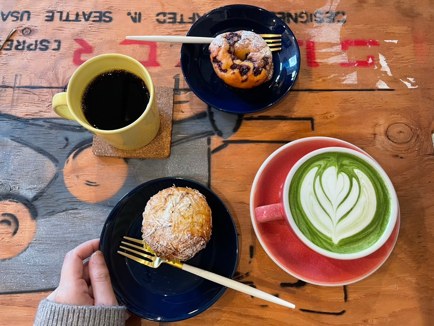 ラテアートや日替わりのマフィンも楽しめます。