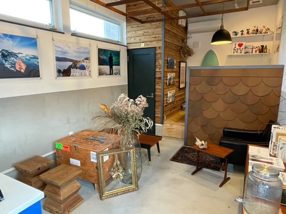 店主の方が世界中を旅して撮影した写真やビンテージ風のインテリアが飾られており、まるで海外カフェのよう。