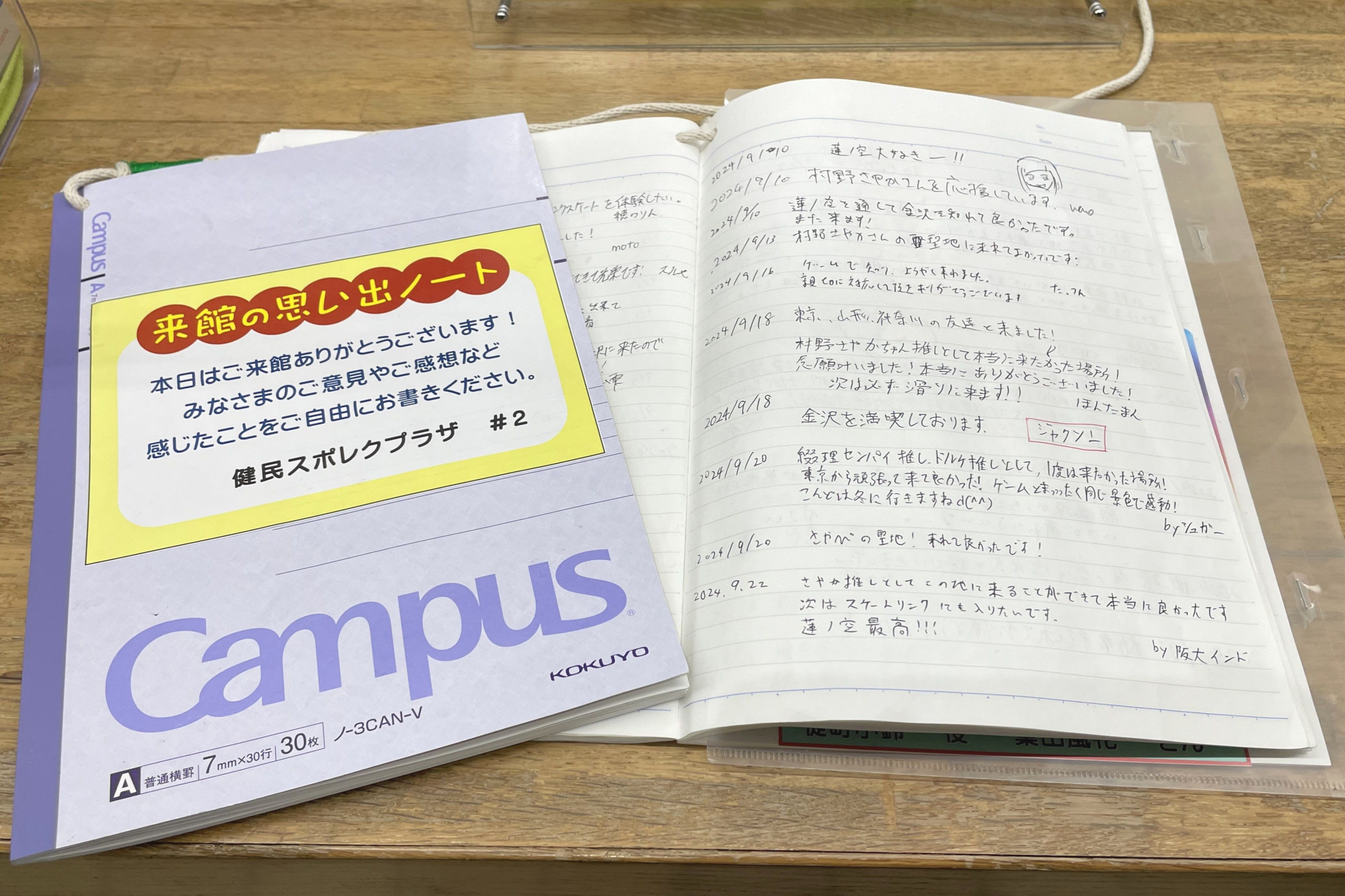 館内に入ると、村野さやかさんのパネルがお出迎え♪他にもグッズや写真の展示、誰でも自由に書くことができる思い出ノートもあります!