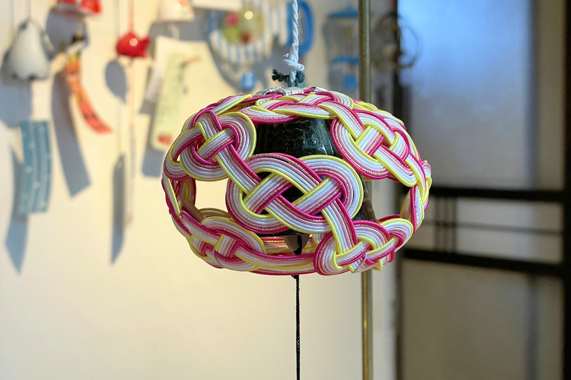 キャストがロケのチャレンジでふーふーしていた風鈴がこちら。石川県の伝統的工芸品「加賀水引細工」(津田水引折型)の風鈴です。加賀百万石の雅で品のある美しさがステキですね!活動記録で登場した風鈴の絵付けシーンのモデルになったと思われる風鈴もありました♪