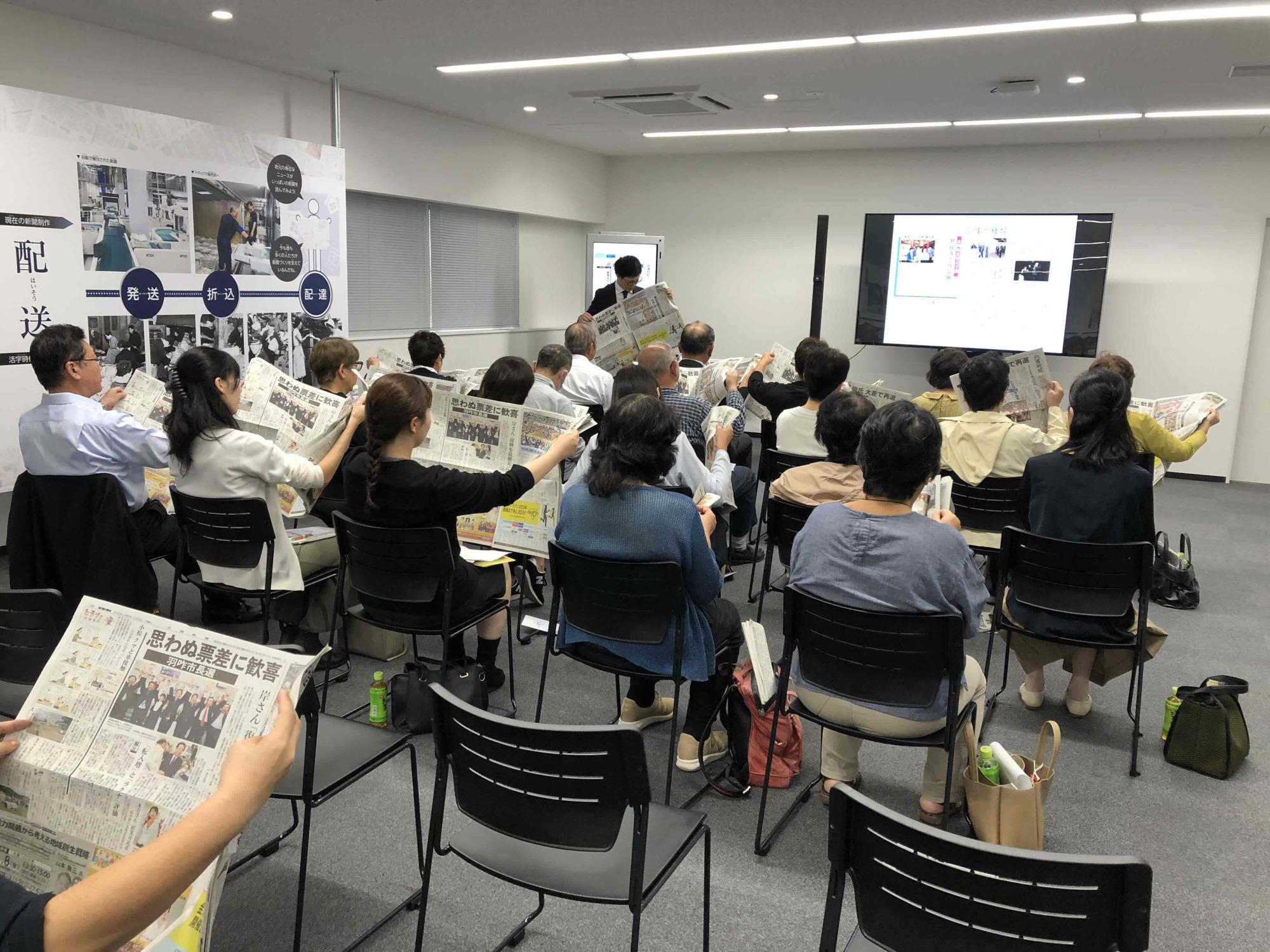 通常の工場内見学に加え、新聞記者による「記事の書き方ミニ講座」があり、お土産として「誕生日の紙面」をプレゼントします。