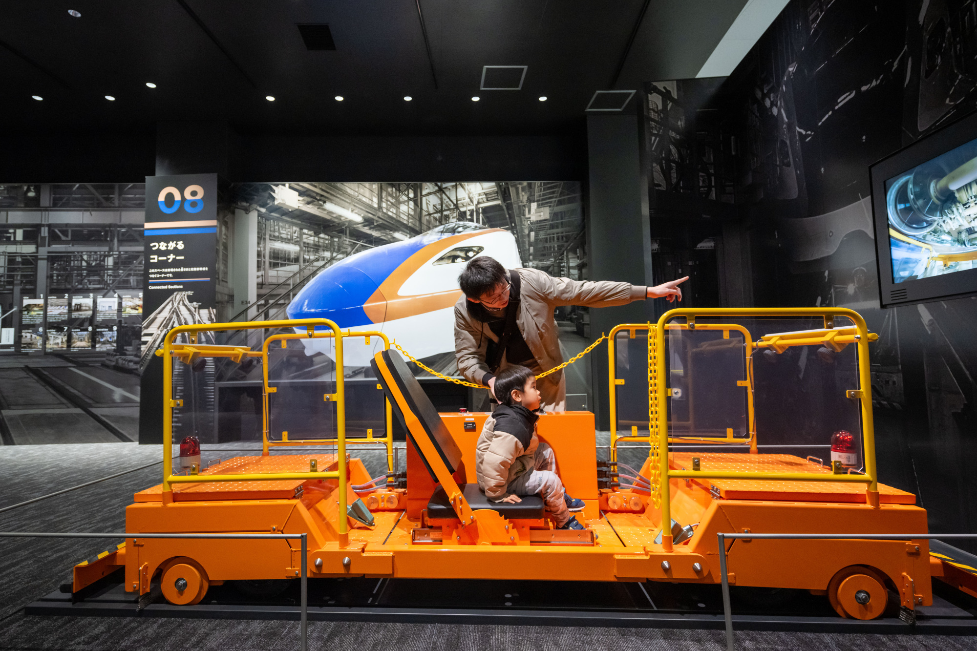 学びと体感エリアでは、最新の新幹線技術に触れられる体験や、北陸新幹線に使われている部品やグランクラスシートなどの実物を展示。