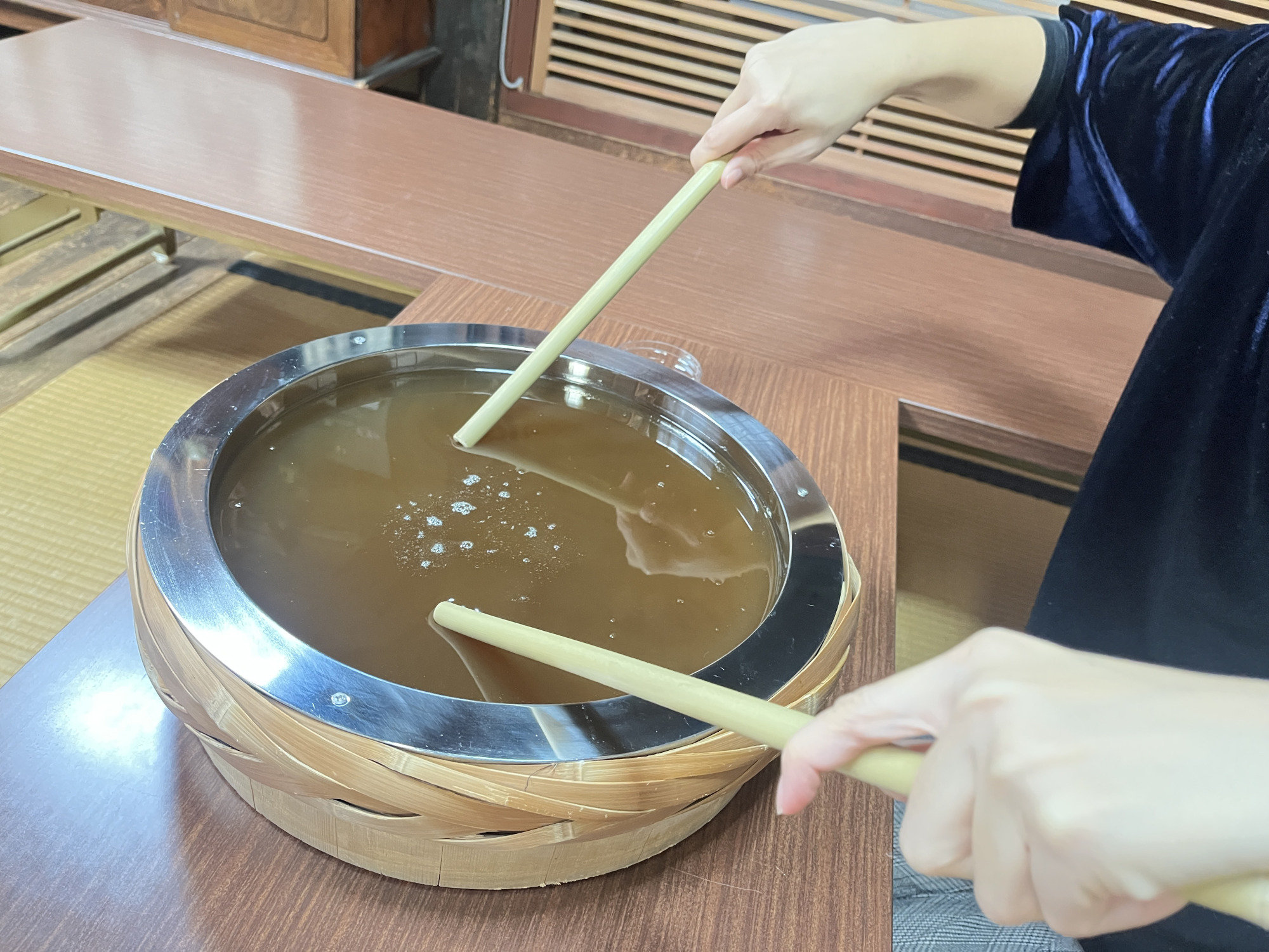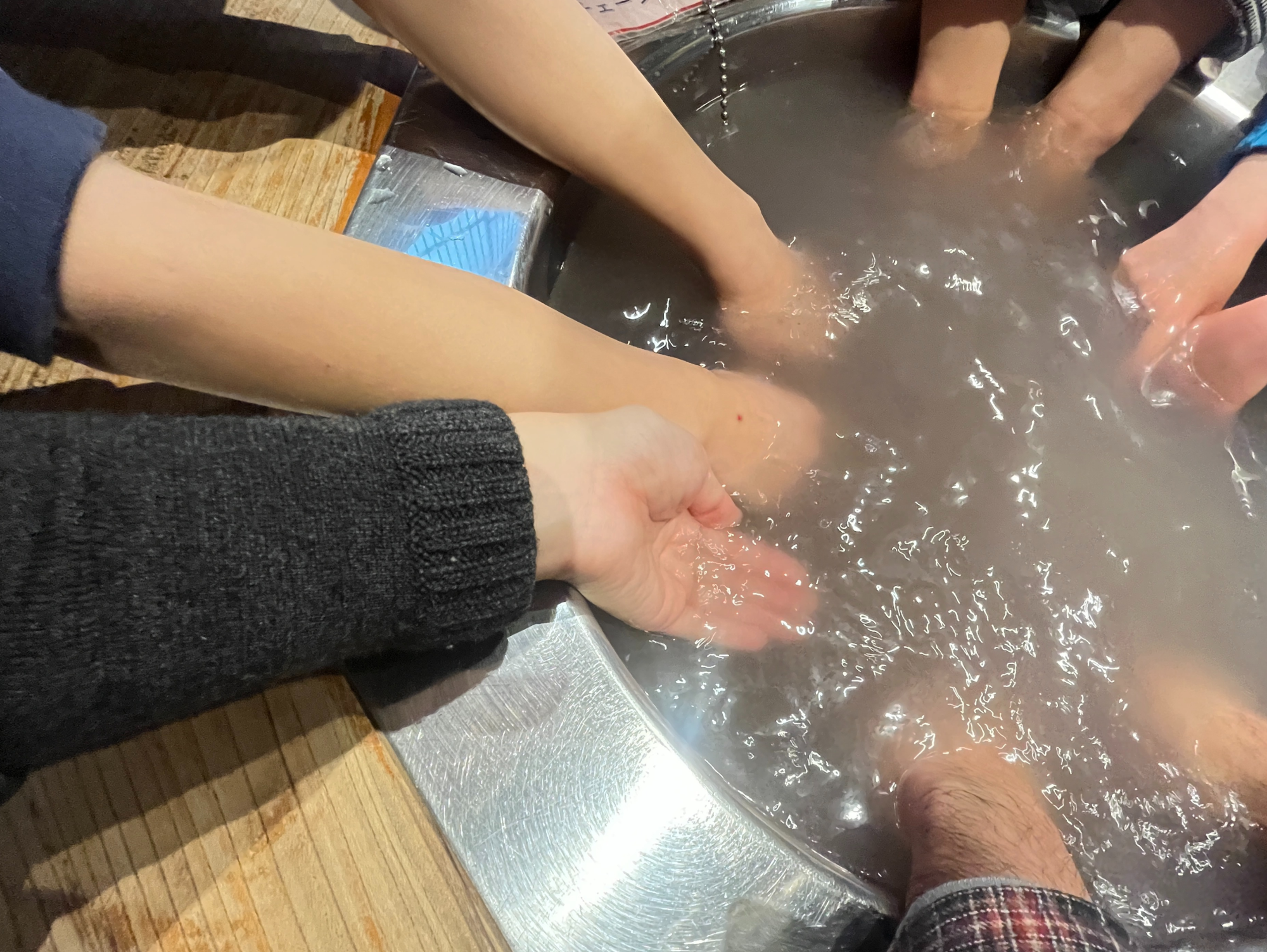 まずは「糀の手湯」を体験。