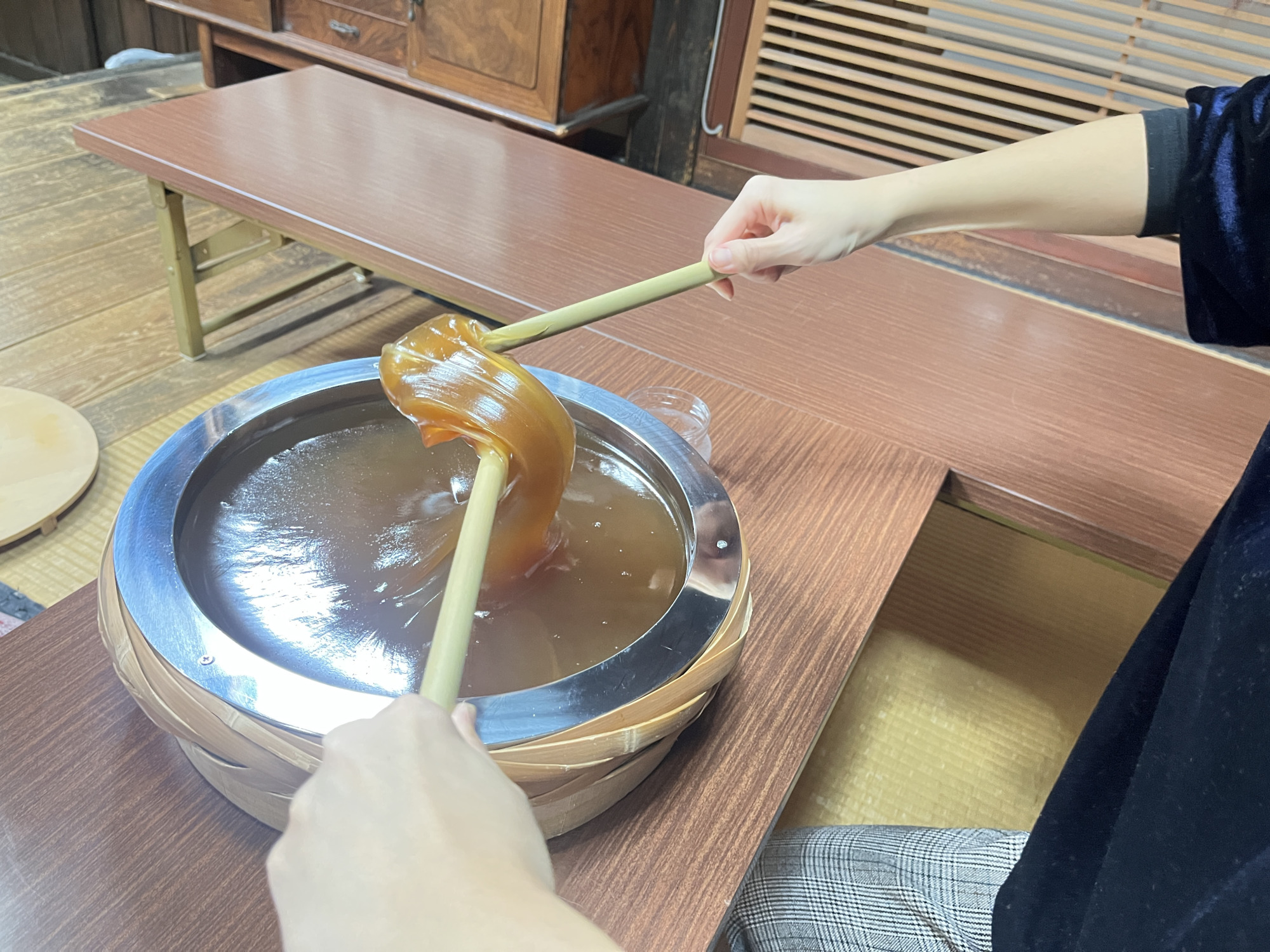 あめの俵屋で「じろあめ」あめ詰め体験