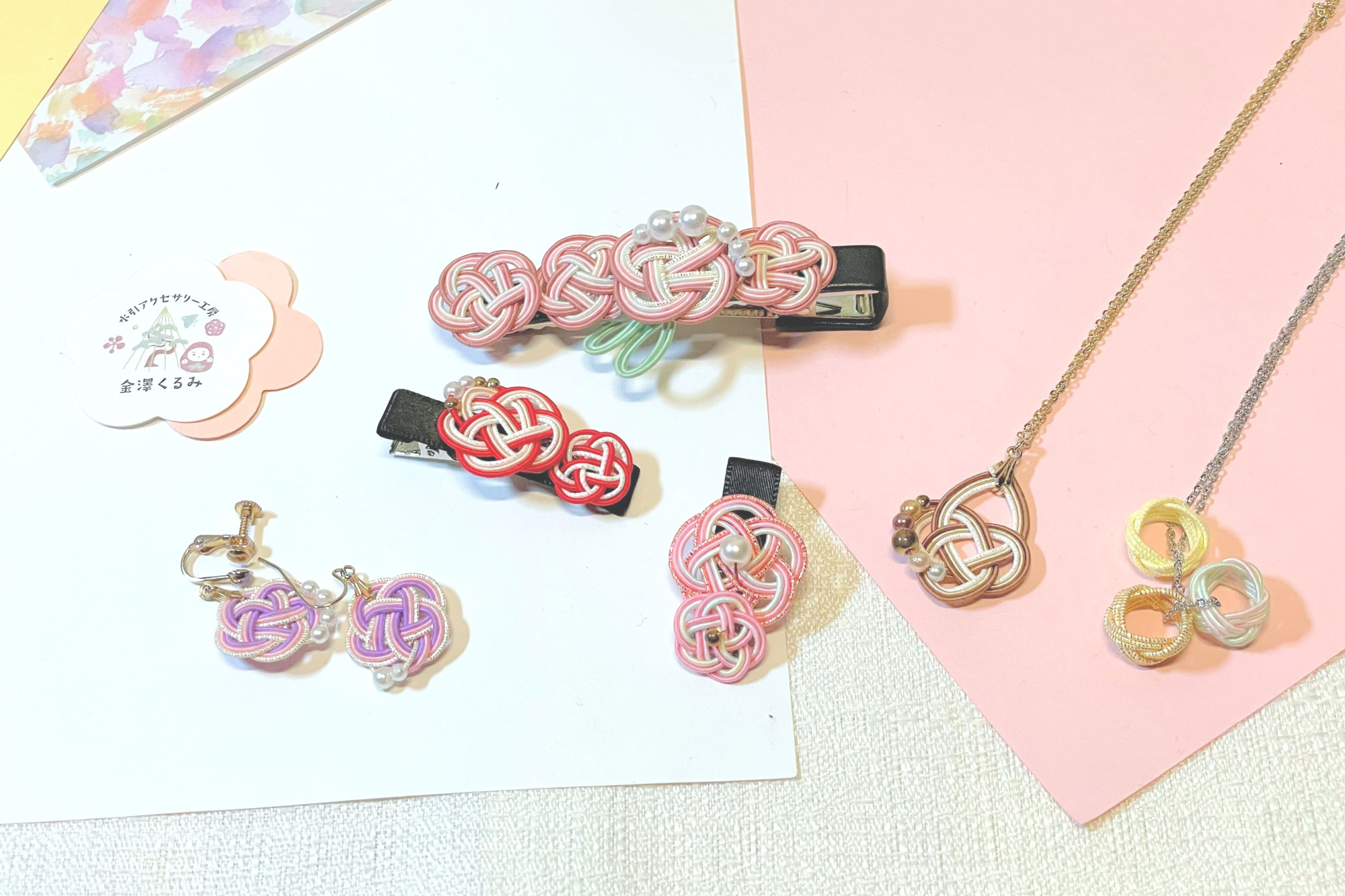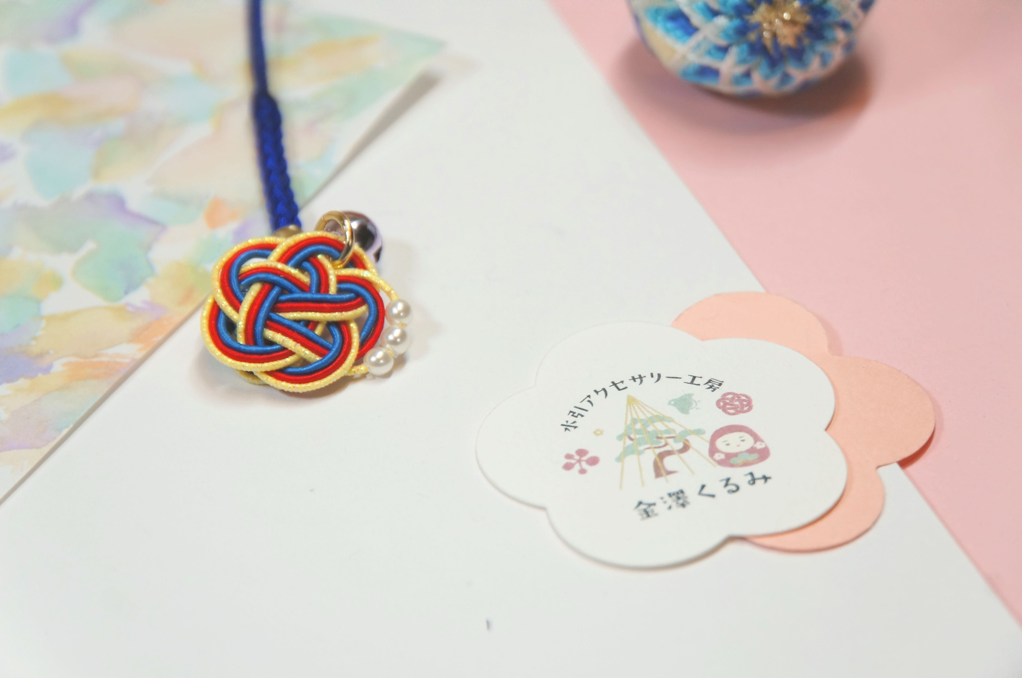 「水引」は、日本で結婚式などの祝儀袋や贈答品の包み紙などにかける飾り紐。ここでは水引を使ったアクセサリー作りが体験できます。水引は結ぶことで幸運や祝福が訪れる縁起物ともいわれているので、金沢旅の記念にもいいですね!
