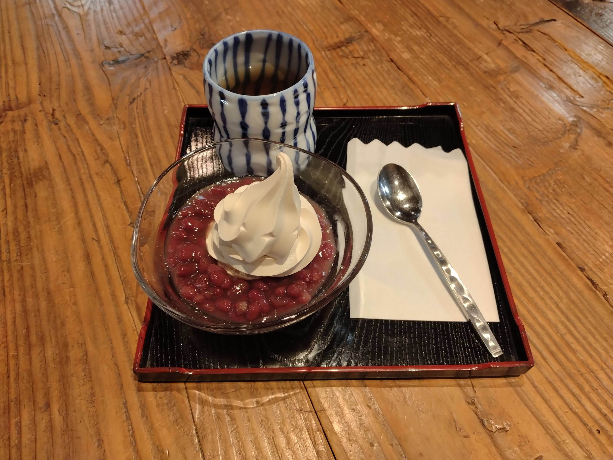 優しい甘さのあんみつと、濃厚なソフトクリームが絶妙に調和し、贅沢な味わいを楽しめます。