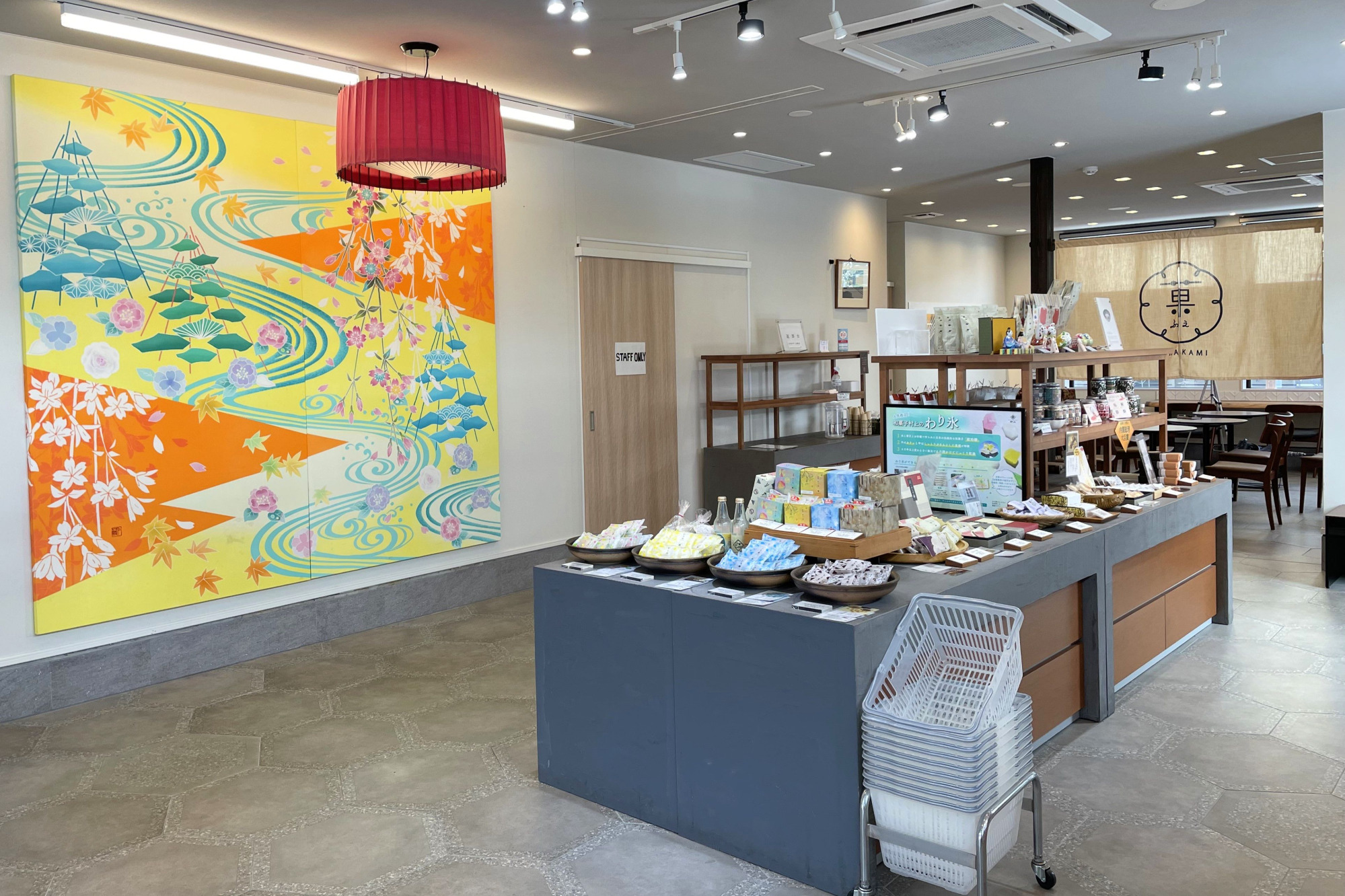 築100年を超える歴史ある醤油蔵を改装し、ギャラリー&カフェとして生まれ変わったスポットで、地元の方々が集う、心安らぐ憩いの場としても愛されています。店内では、醤油樽をテーブルや椅子として利用しており、歴史と伝統が感じられます。濃厚でまろやかな味わいが魅力の醤油ソフトクリームは、キャラメル味で後味もすっきり。是非一度試してほしい一品です!キャストの皆さんも食べたぶっかけうどんも絶品です。紺市醤油のお醤油やおだしを自分好みにかけて楽しむことができますよ!また、大野産の醤油をはじめ、地元ならではの特産品も販売しております。