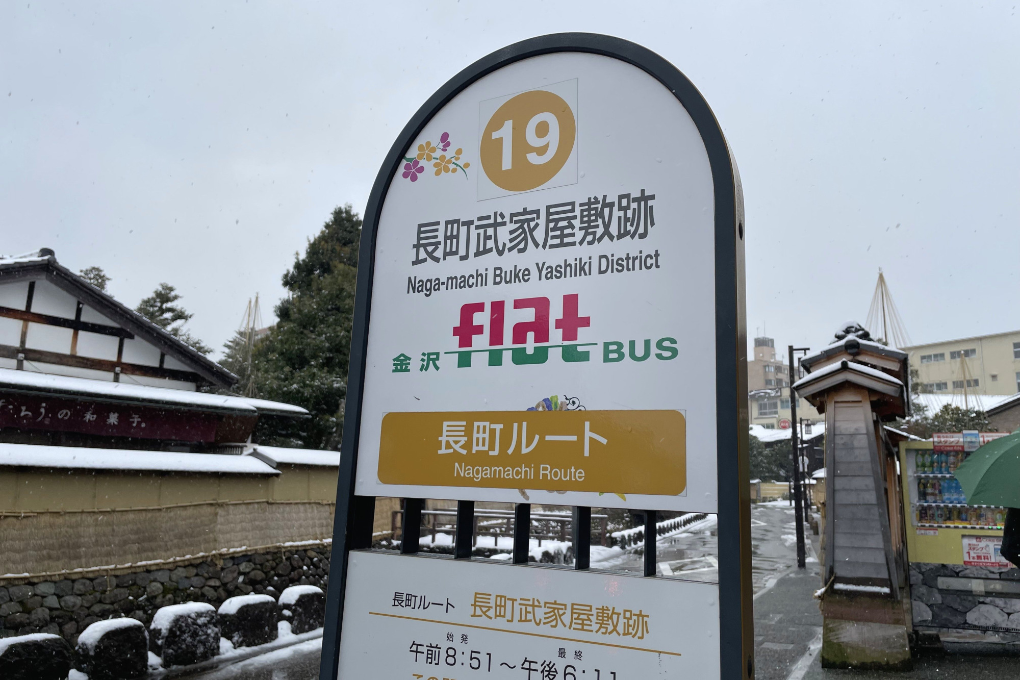 もう1つのアクセス方法は、小型の巡回型バス「金沢ふらっとバス・長町ルート」の利用。こちらは金沢駅から徒歩約10分→ふらっとバス用バス停「リファーレ・西門通り」で乗車→「長町武家屋敷跡」で下車すると目の前がお店です。巡回型バスのため乗車時間は多少長くなります。
