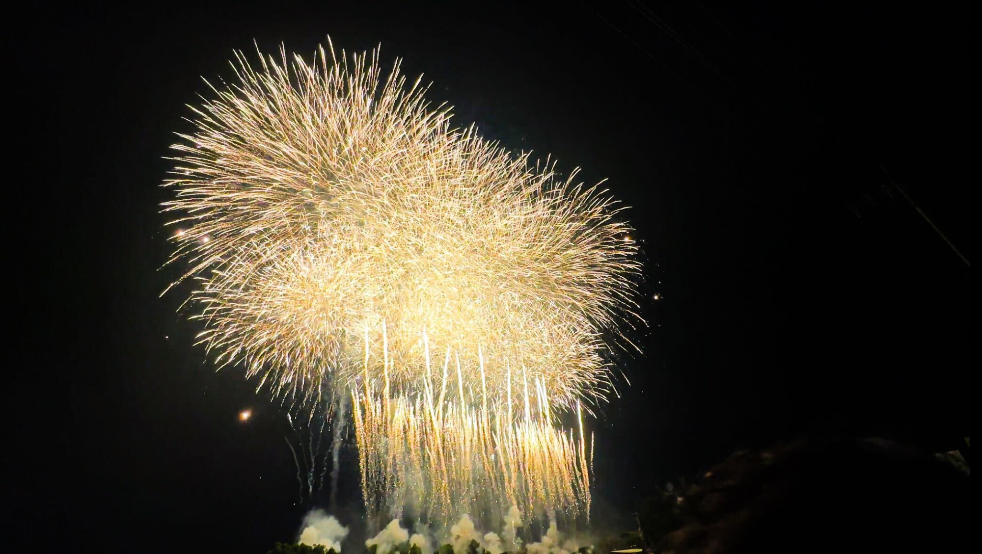 なかでも圧巻だったのが、金色の大連発!真っ暗な夜空を黄金のシャワーが覆い尽くす様子は、まさに息をのむ美しさでした。シャッターを切るのも忘れて見入ってしまうほど、迫力と美しさが詰まった最高の花火。体の芯まで響く音と、まばゆい光の連続に、心から「来てよかった」と思える瞬間でした。