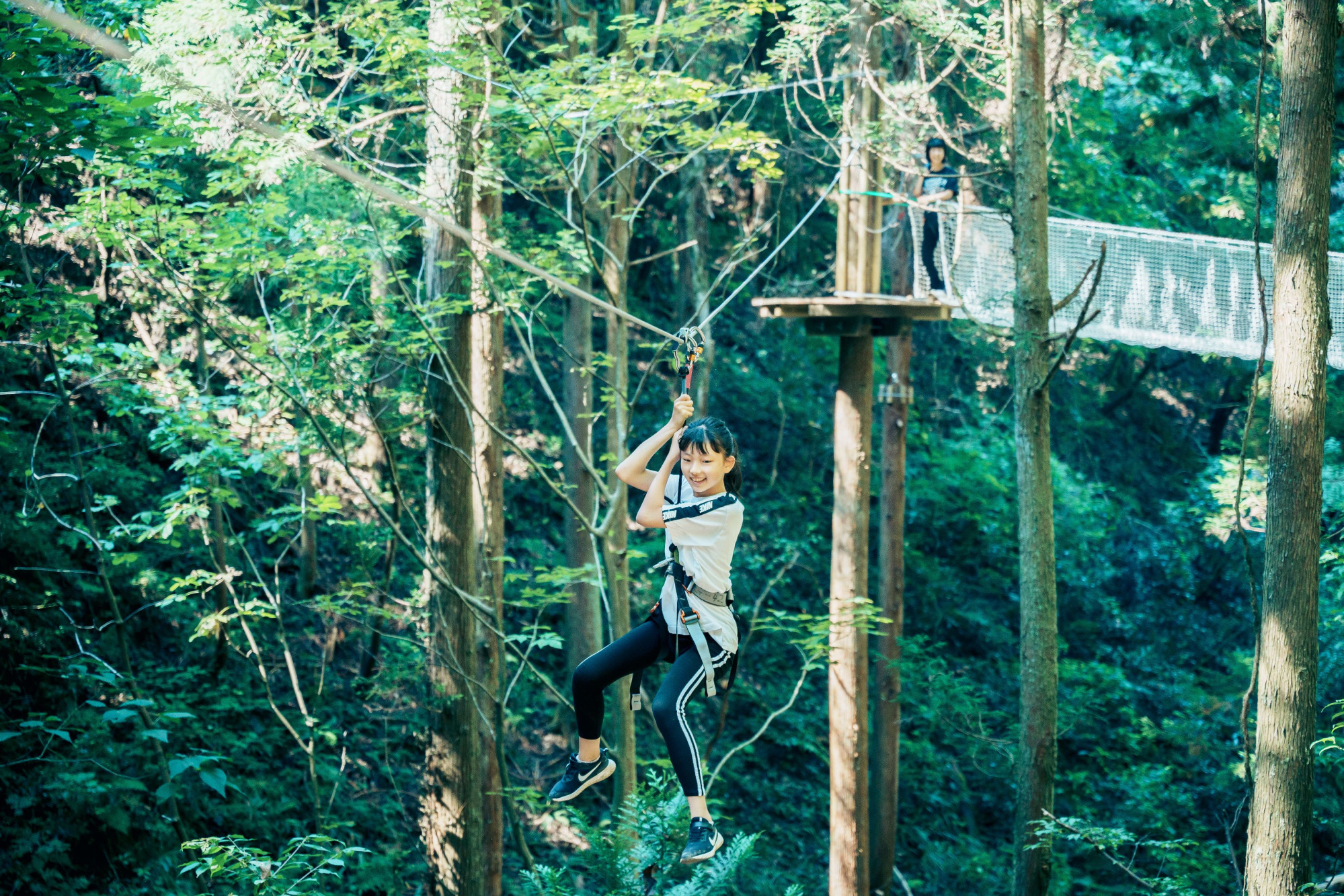 実は、体重を命綱に預けて滑り降りるだけなので、操作自体はとてもシンプル。ですが、着地の瞬間だけはしっかりと意識を集中させる必要があります。高さと距離があることで、まるでジェットコースターのようなスリルもありながら、自分の力で走っているような一体感が味わえるのも魅力のひとつ。