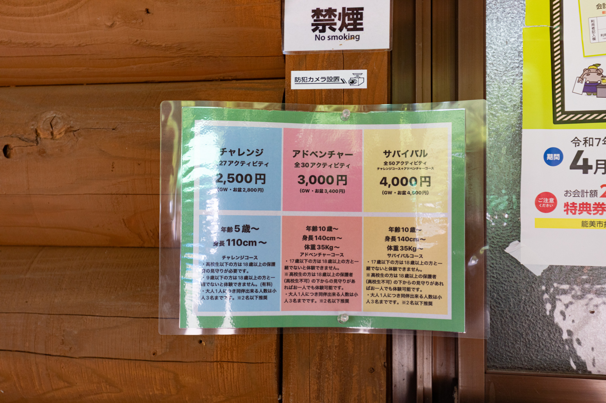 アドベンチャーコース:3,000円(※ゴールデンウィーク・お盆期間は3,300円)