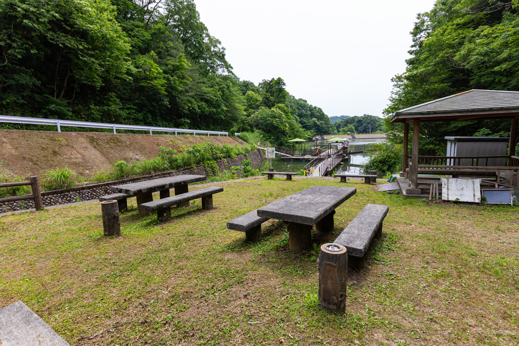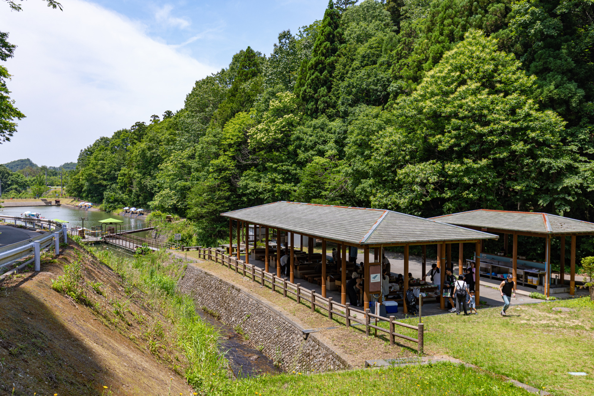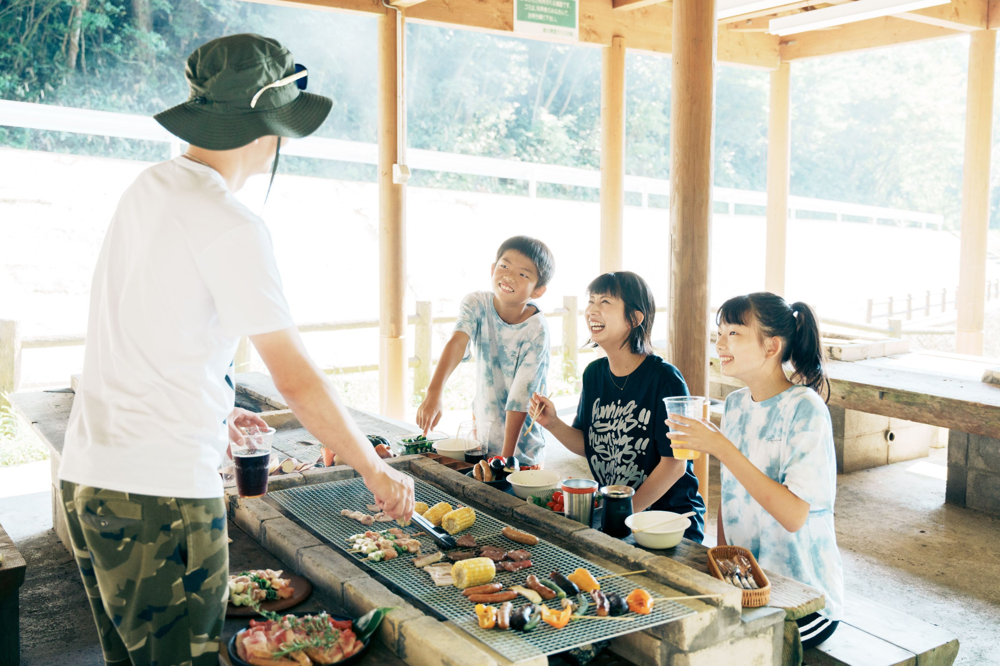 BBQは食材の持ち込みOK(無料)。さらに、食材付きの手ぶらプラン(※3日前までに要予約)も用意されており、準備の手間なく気軽に楽しめます。BBQ広場は開放感あふれる里山の中にあり、周囲には緑豊かな森林や池もあって、自然を感じながらゆったりとした時間を過ごすことができます。