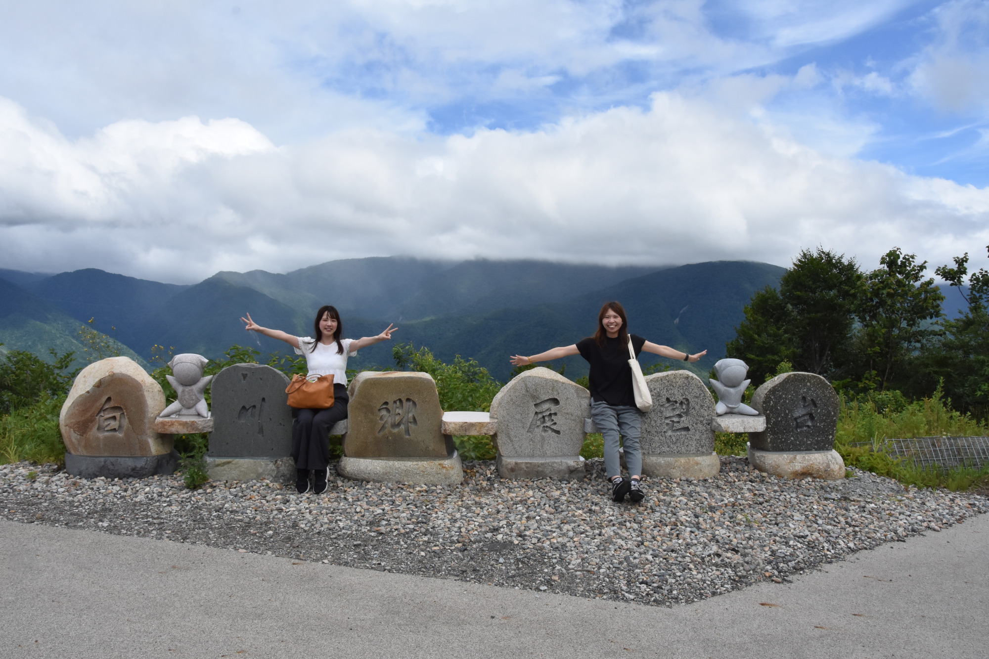 また、白川郷展望台にはホワイトくんとロードちゃんと写真が撮れるモニュメントも!