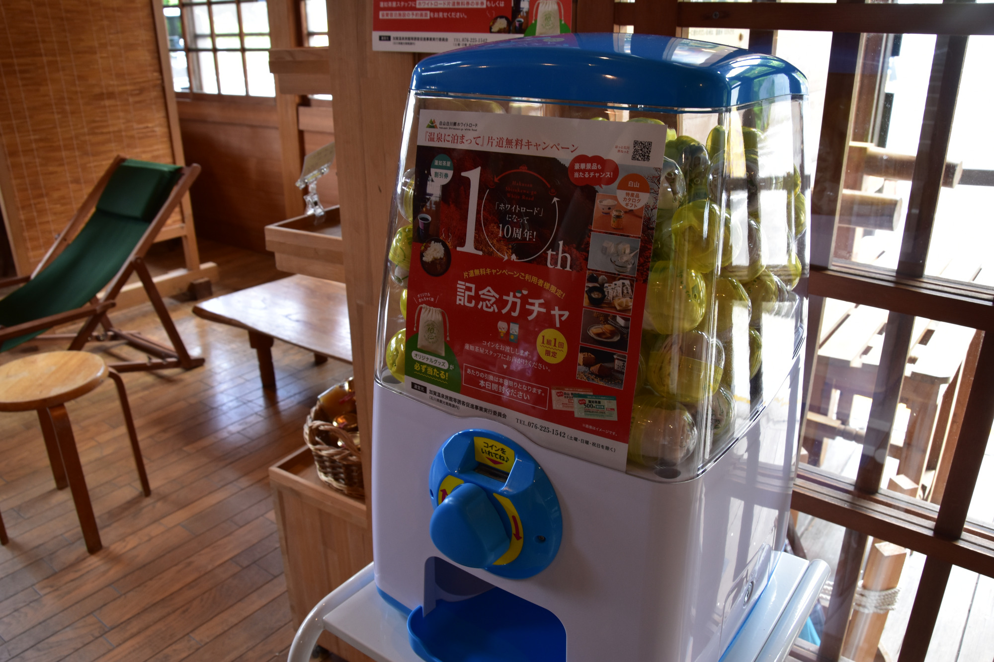 そして蓮如茶屋入口には『ホワイトロード『温泉に泊まって』片道無料キャンペーン』の利用者であれば回せる記念ガチャが!!🔴🔵