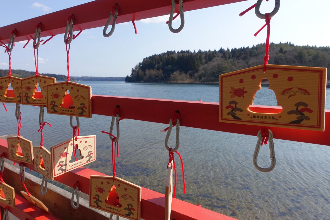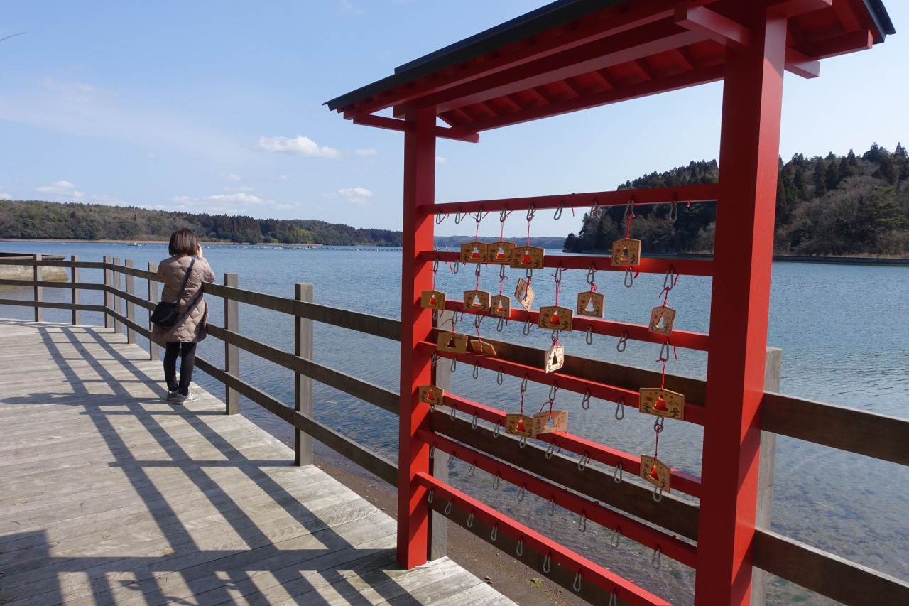 絵馬所では、多くの人の願いが潮風に揺れていました。