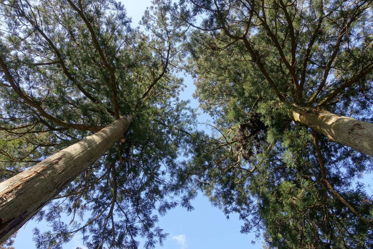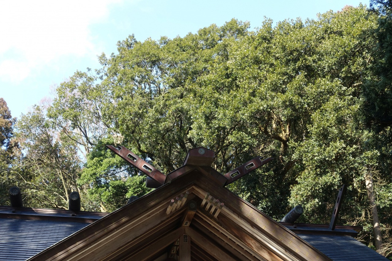 樹齢600年の大木に迎えられるのは、「天日陰比咩神社(あめひかげひめじんじゃ)」。境内に足を踏み入れると、凛とした空気に包まれます。
