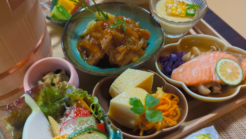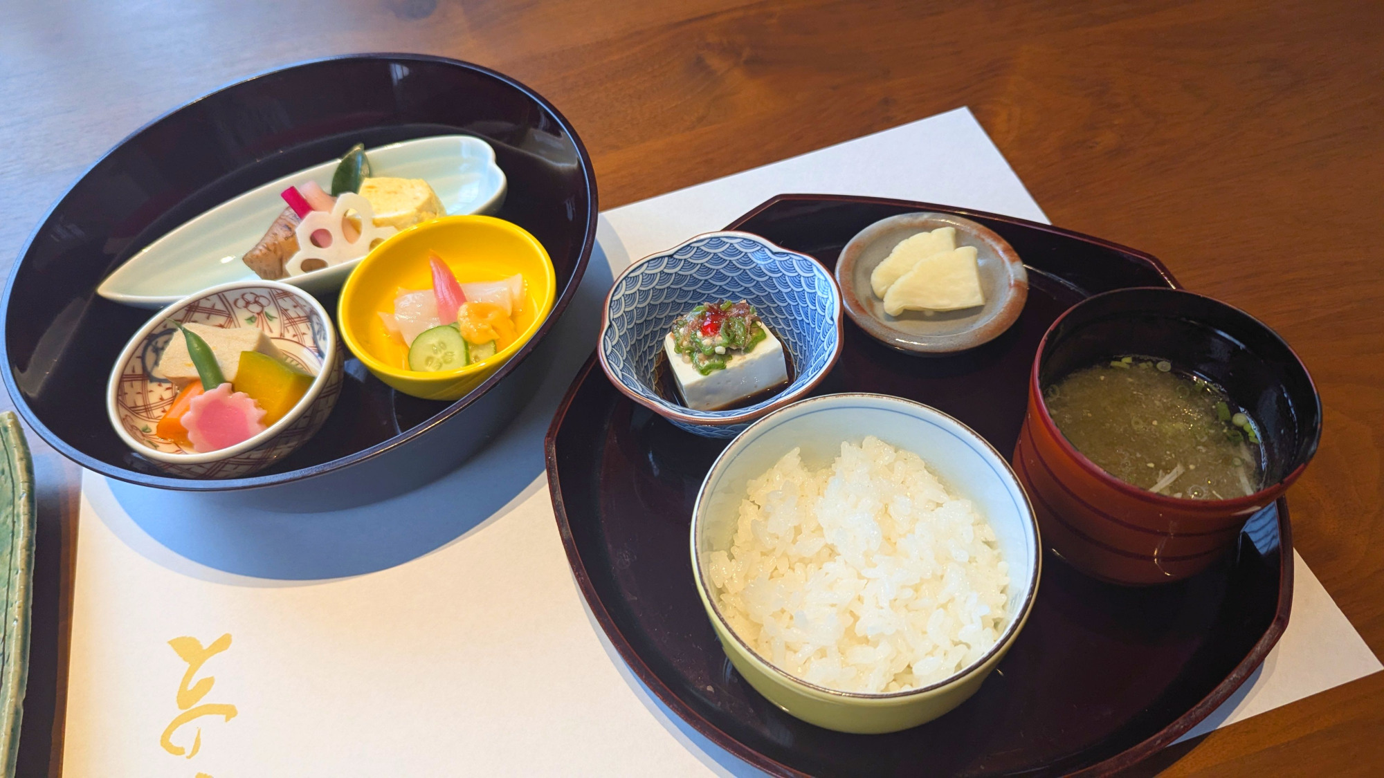 二段重ねの御膳をそっと開ければ、そこに広がるのは繊細で丁寧に仕立てられた料理の数々。小鉢一つひとつに違う味わいが込められ、和食ならではの奥深さと豊かなバリエーションを心ゆくまで堪能できます。
