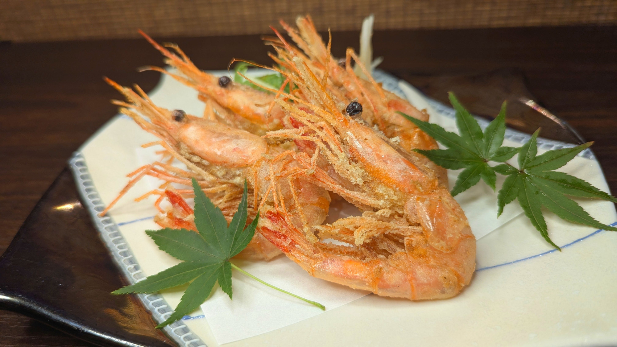 さらに、頭からがぶりといける甘エビの唐揚げは、香ばしさと旨みが一気に広がる絶品の一品。