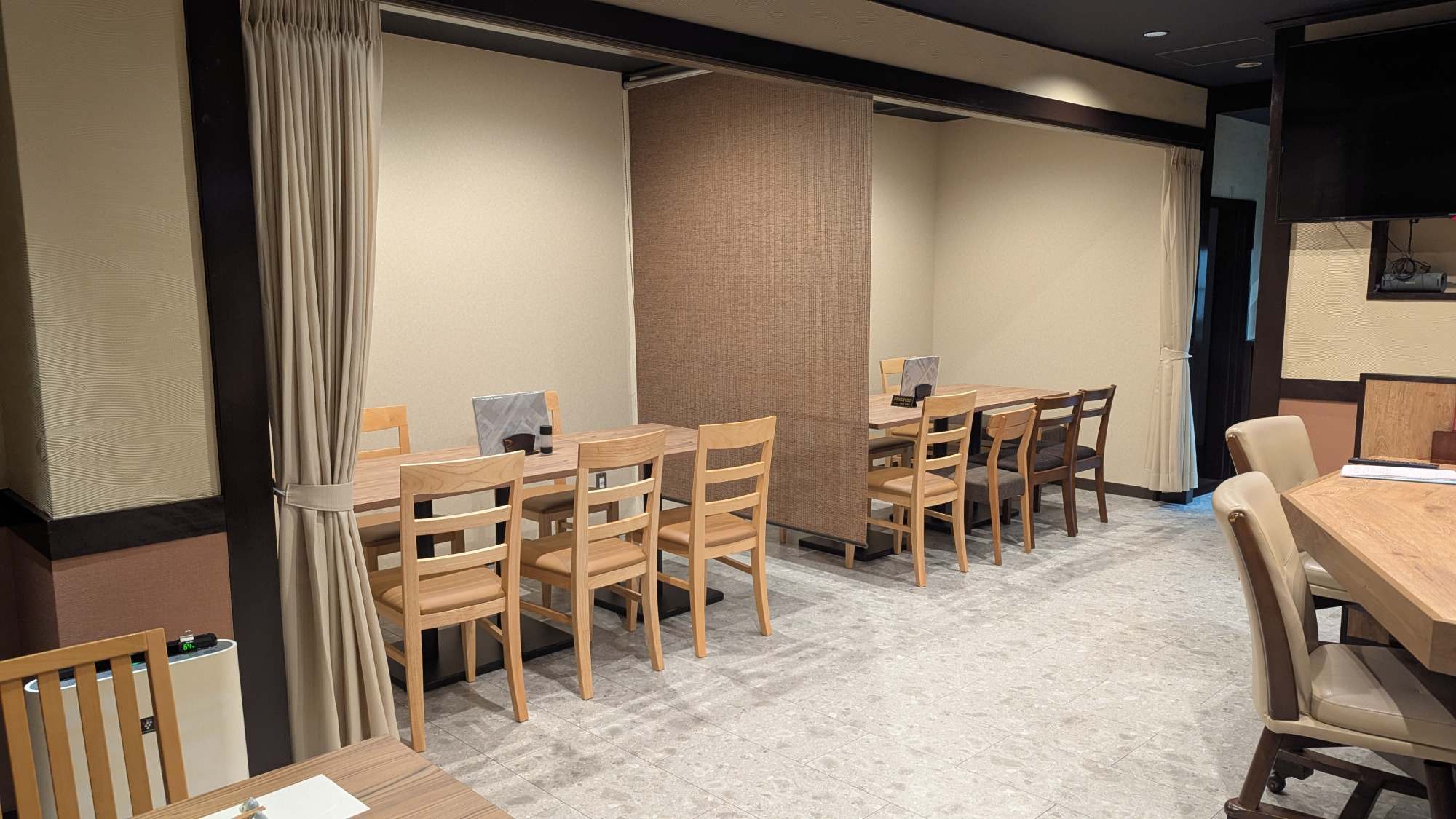 木の温もりが広がる店内は、テーブル間もゆったりと配置され、観光の合間はもちろん、金沢の夜をのんびり楽しむ時間にもぴったり。奥のテーブルはカーテンを閉めれば半個室風にも使えるので、友人や家族とのプライベートな時間を過ごすのにもおすすめです。