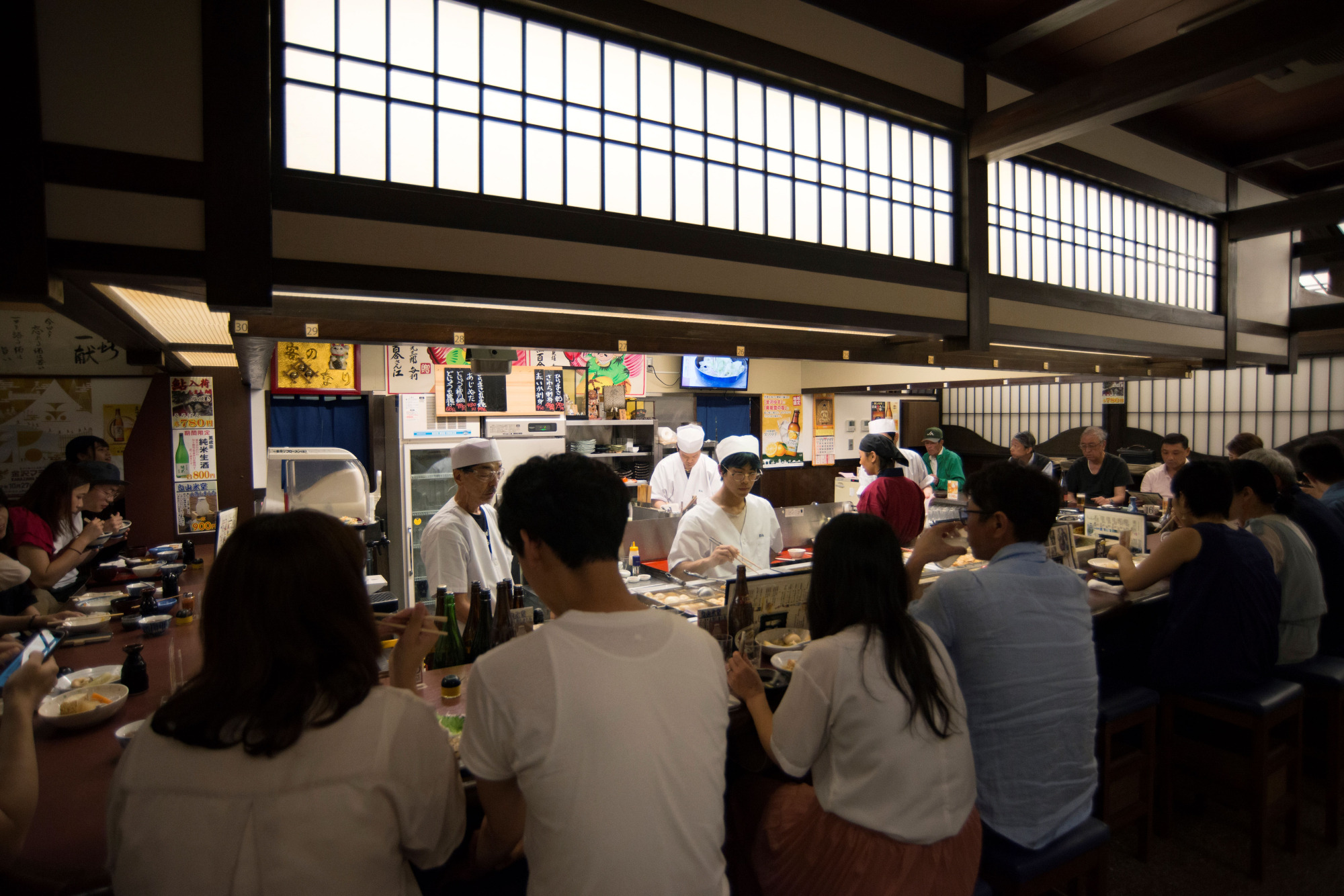 地元客と観光客が同じカウンターで肩を並べ、名物おでんや郷土料理を楽しむ姿はまさに金沢駅ならでは。にぎやかさの中にも、温かさと一体感を感じられる空間です。
