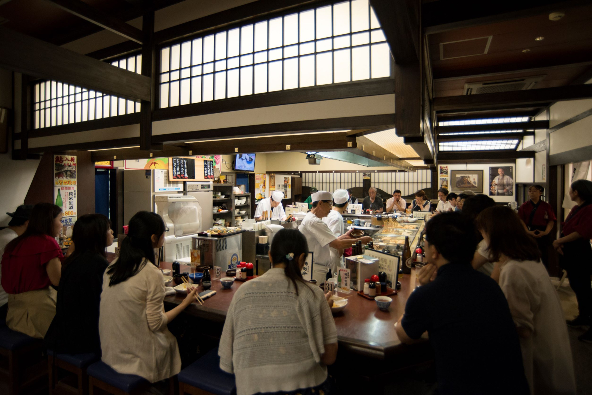 カウンターに座れば、気さくで笑顔の絶えない大将と会話を楽しみながら、目の前で繰り広げられる職人技を間近に堪能できます。