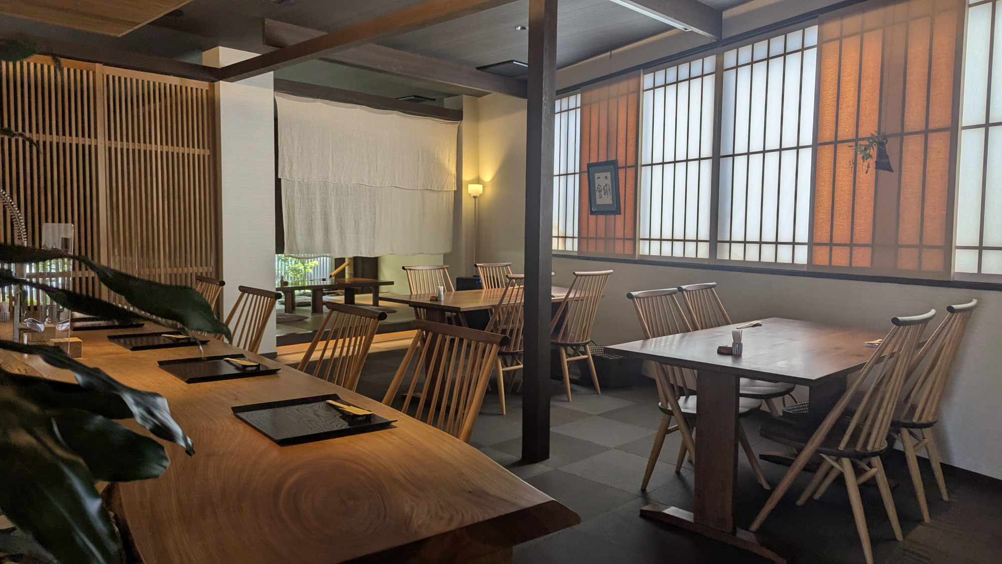 木の温もりに包まれた店内は、和の趣を感じさせる落ち着いた空間。