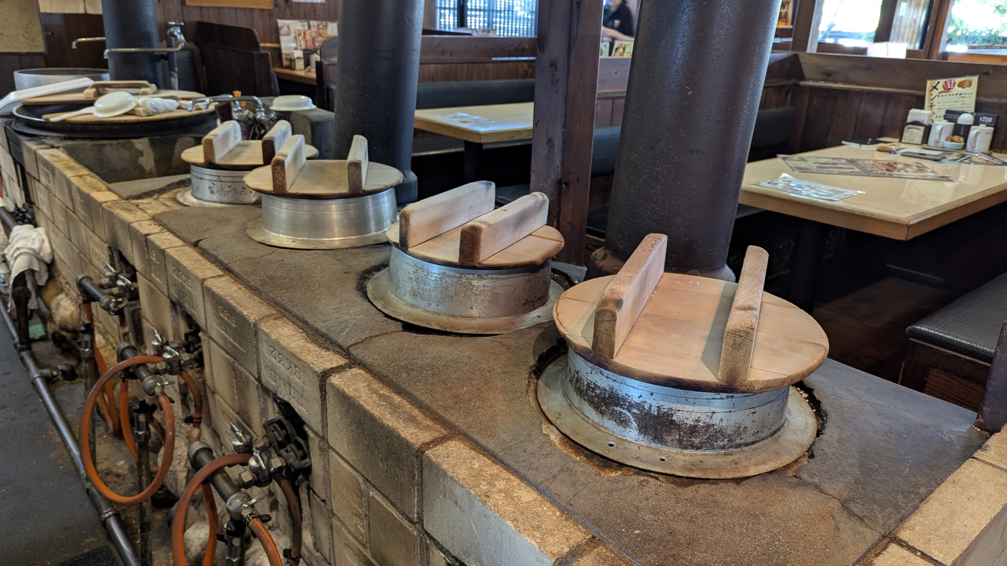 古き良き昭和のぬくもりをそのまま残した店内は、どこかジブリ映画に迷い込んだようなノスタルジックな雰囲気。木の温もりと柔らかな灯りに包まれ、かまどの存在だけでご飯の美味しさを想像してしまうほど。