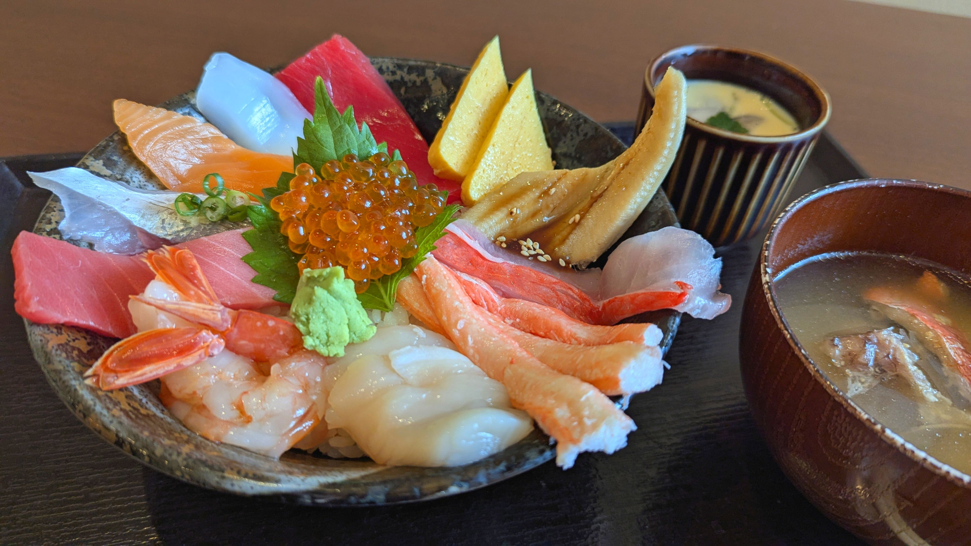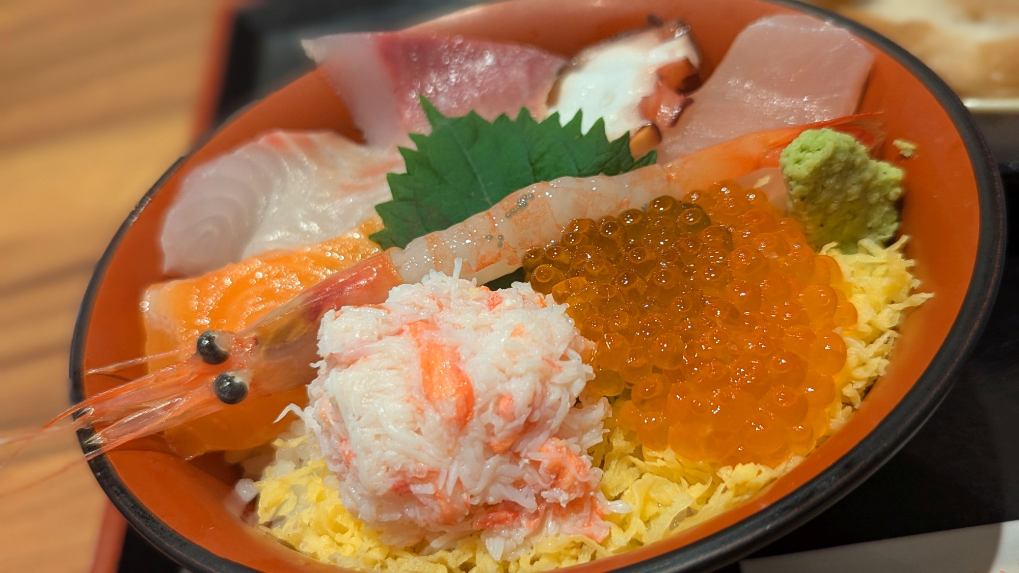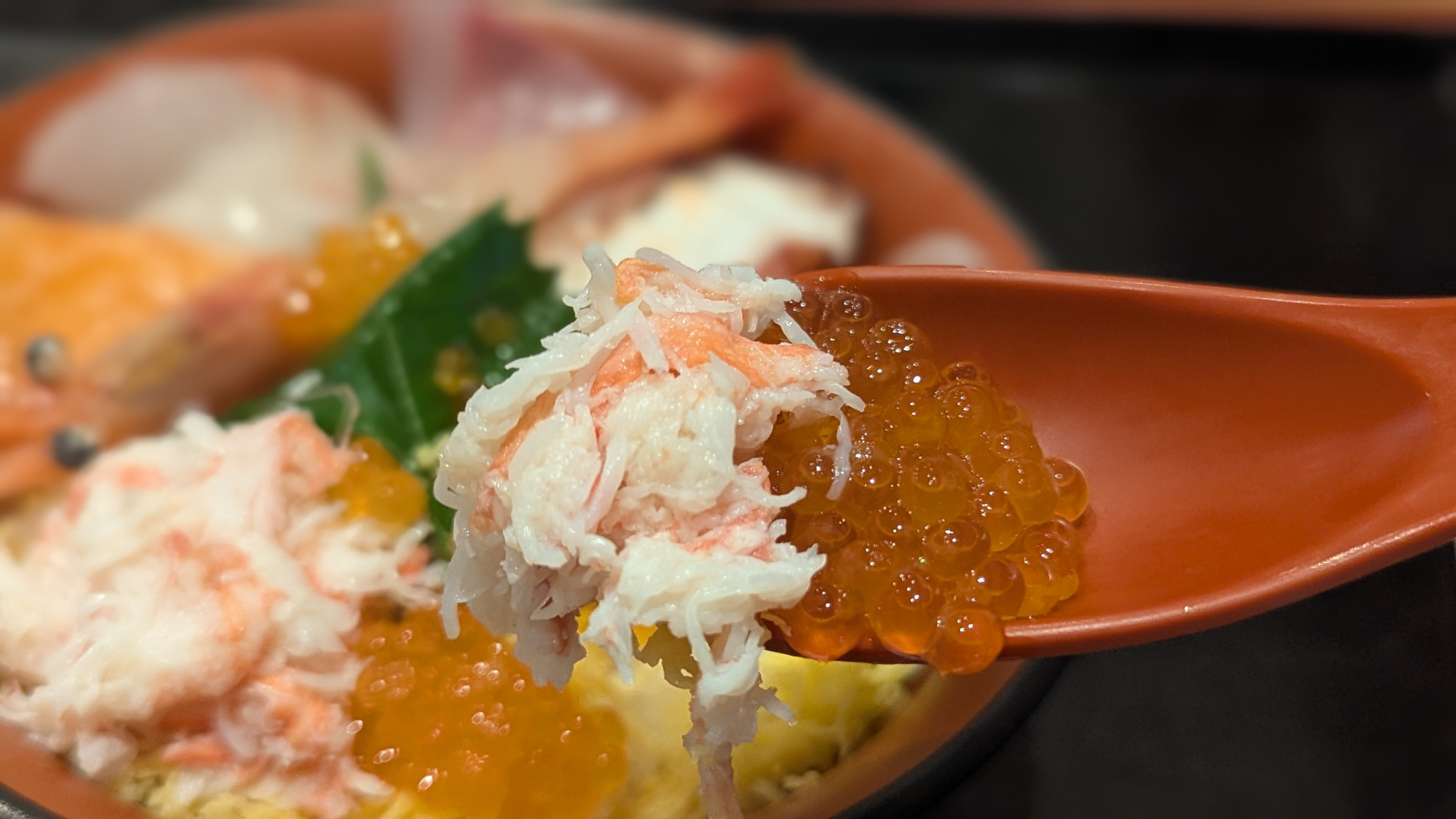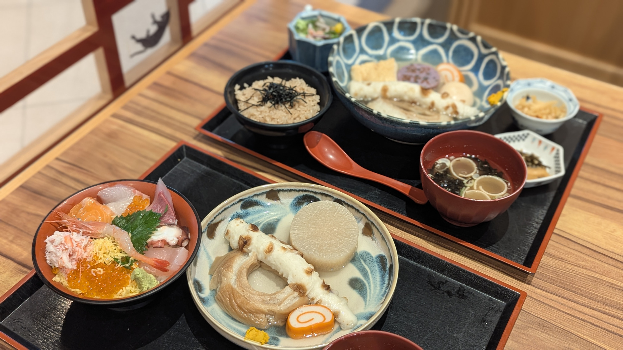 欲張り派には、金澤おでんとミニ海鮮丼のセットがおすすめ!ぷりぷりの甘えび、輝くいくら、ふわっとした蟹身が必ずのる贅沢な丼と一緒にいただけば、金沢の海と郷土の味を一度に堪能できますよ。