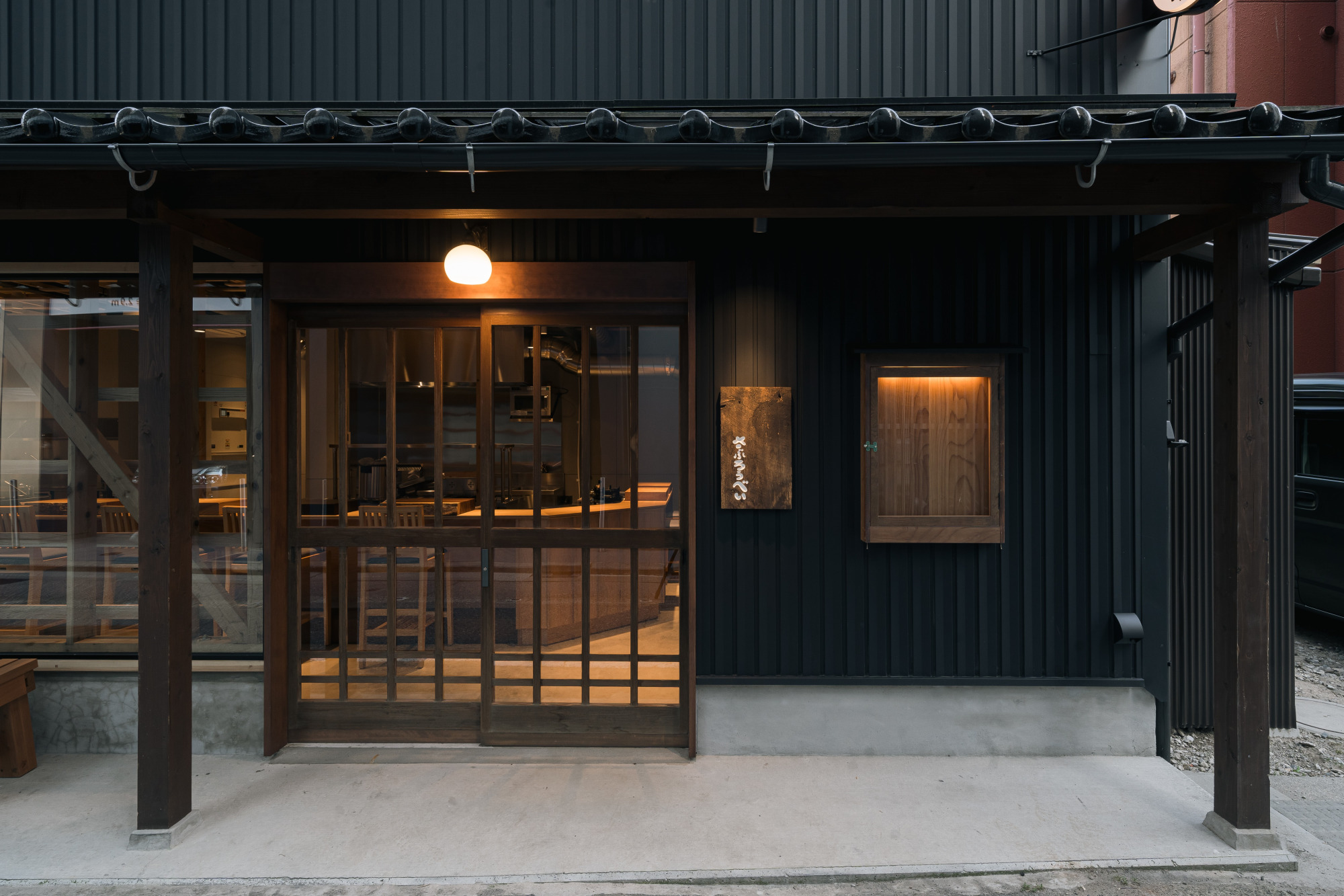 2025年6月に尾山町にオープンした「さぶろうべい」は、2棟の町家を贅沢につなげたリノベーション空間。黒塗りの外観から一歩入ると、木の温もりと現代的な設えが調和した居心地のよい店内が広がります。