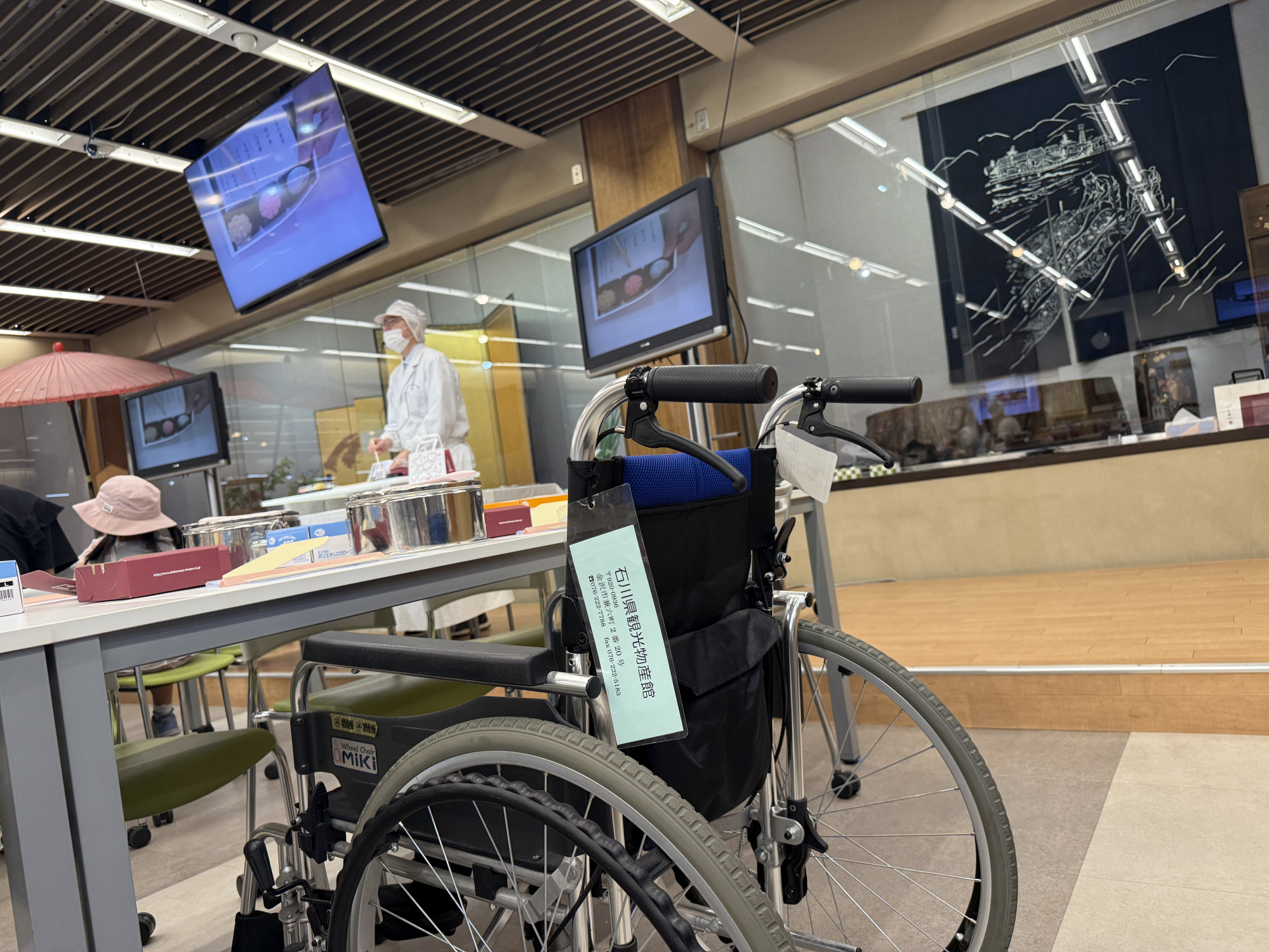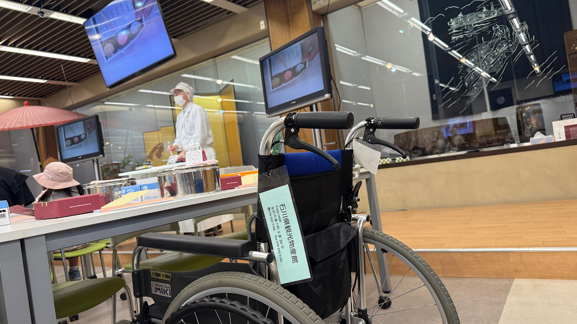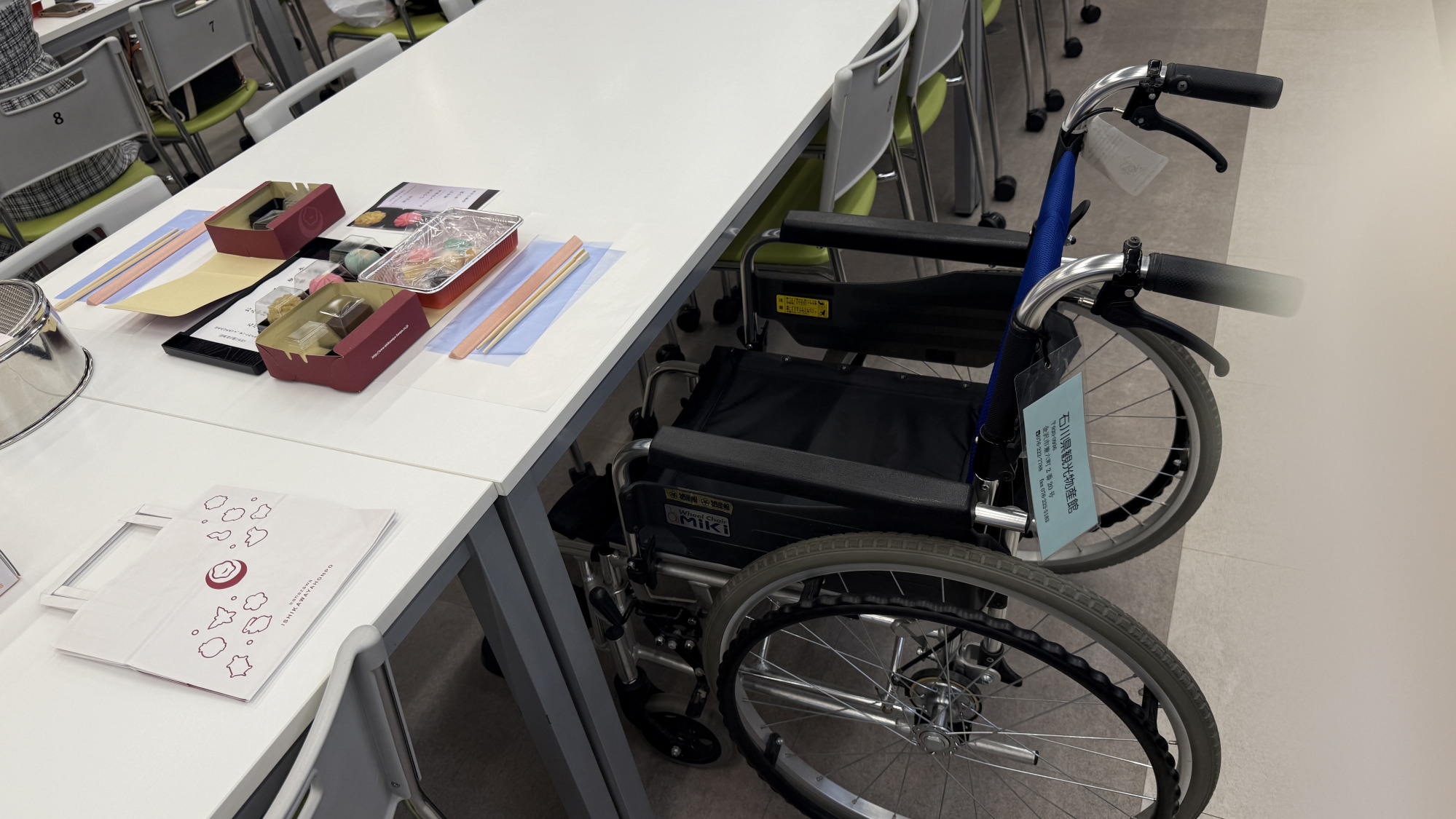 また、同じスペースで加賀で古い歴史を持つ「落雁」の手作り体験も可能で、車椅子を利用される方にも無理なく楽しめるよう、高さや動線に配慮しています。