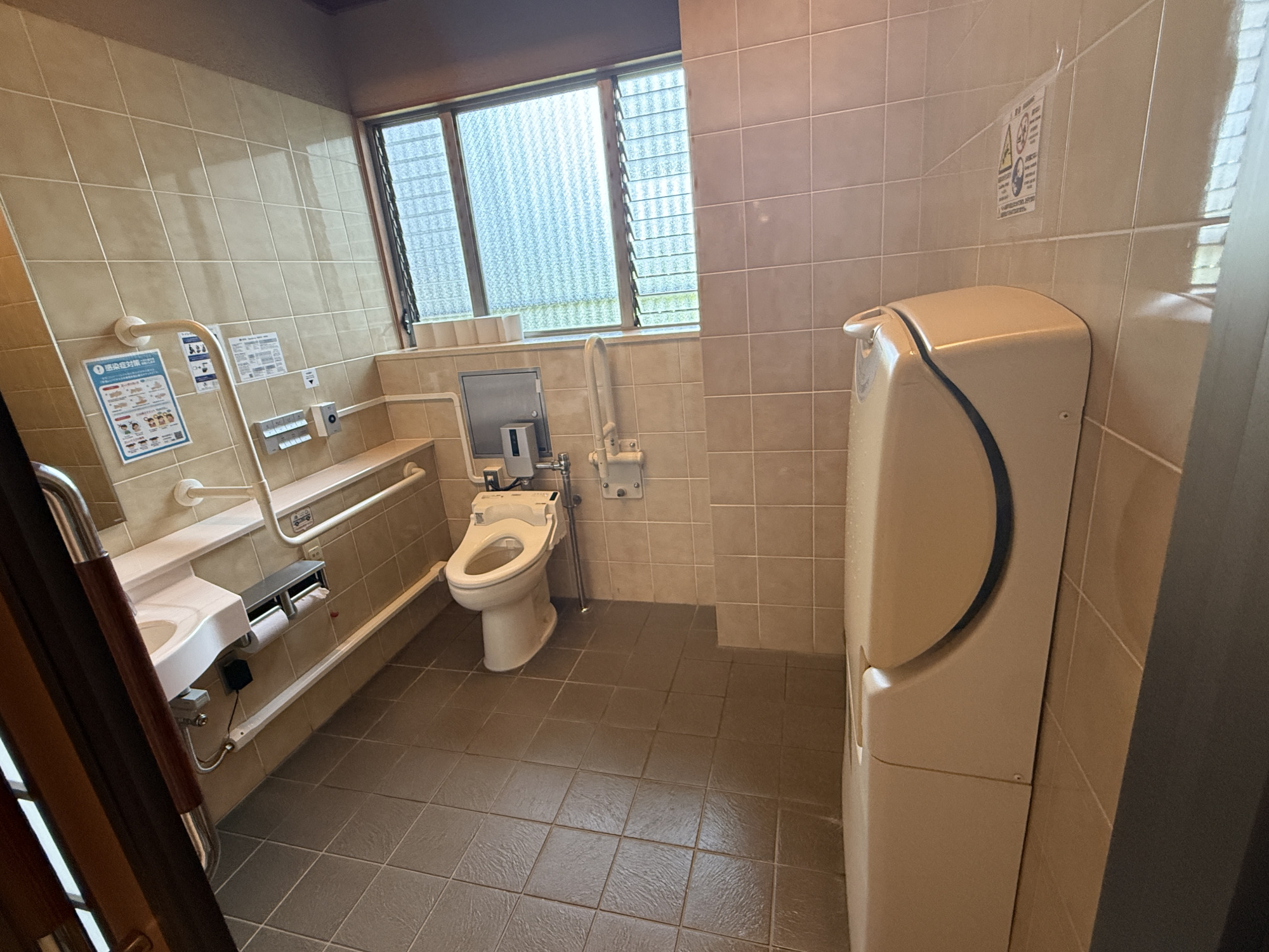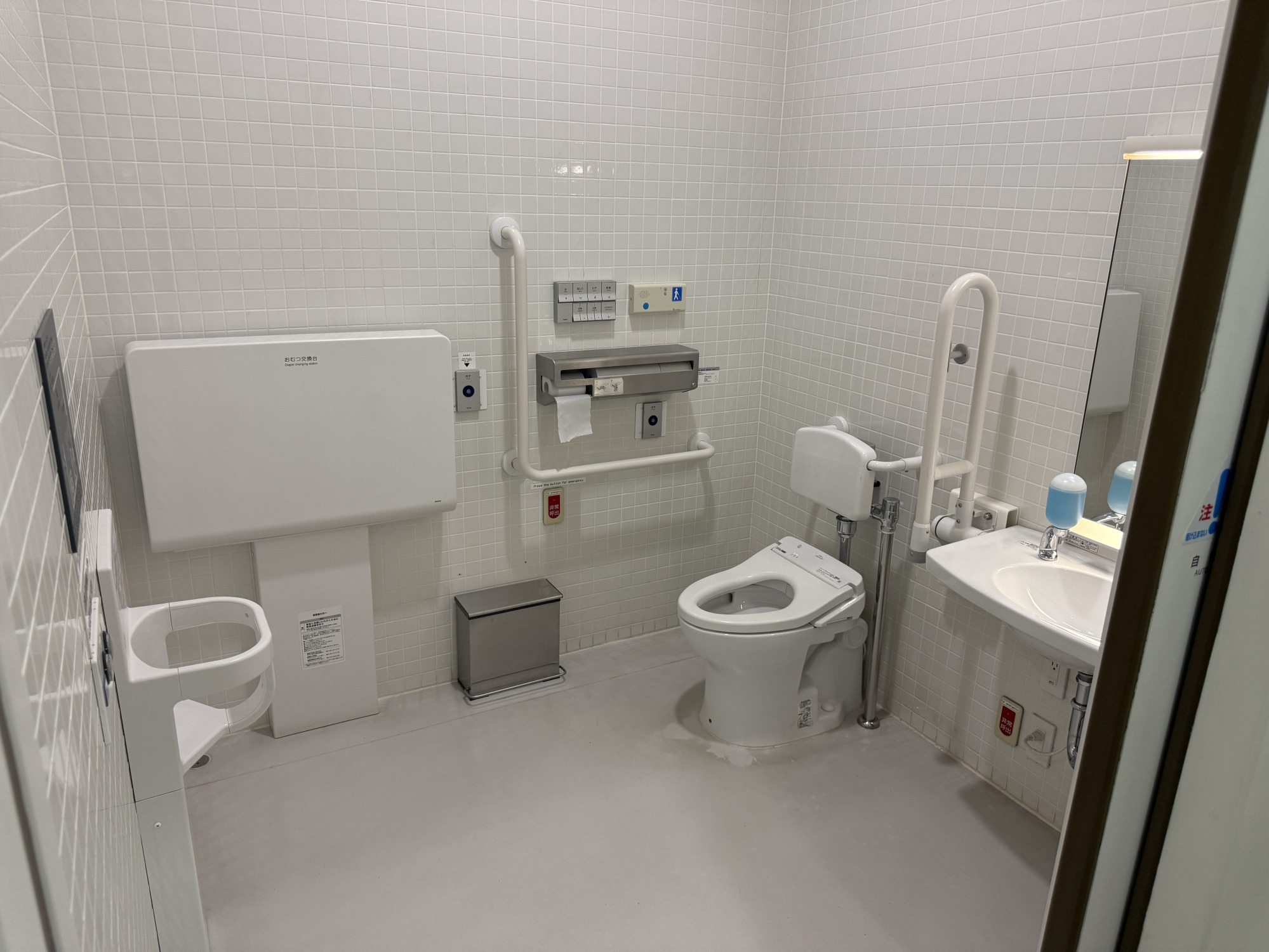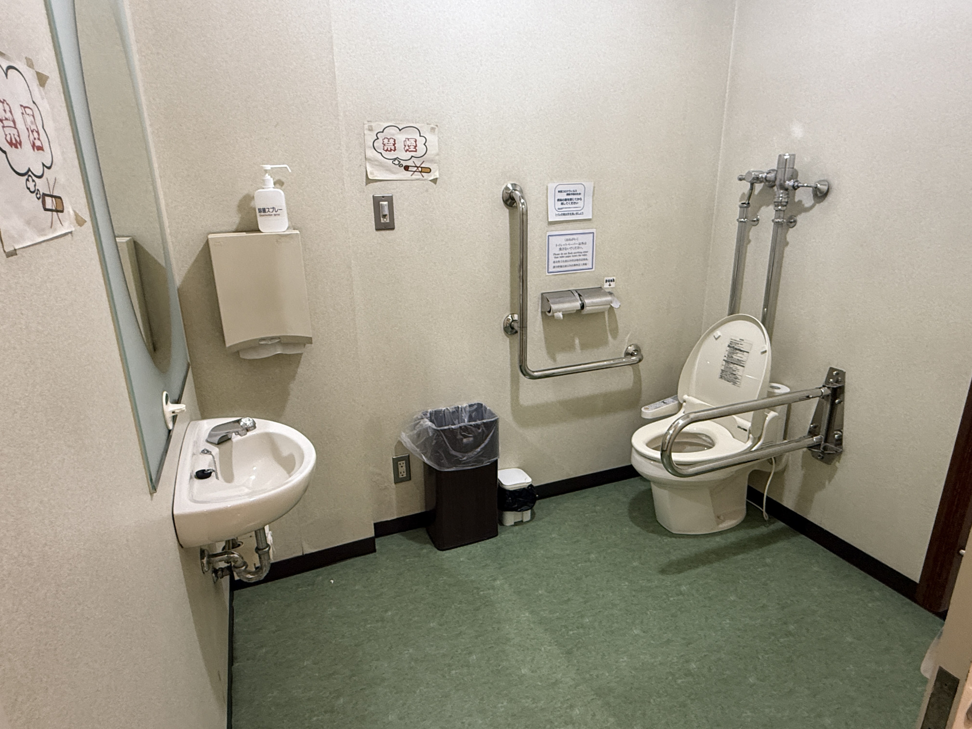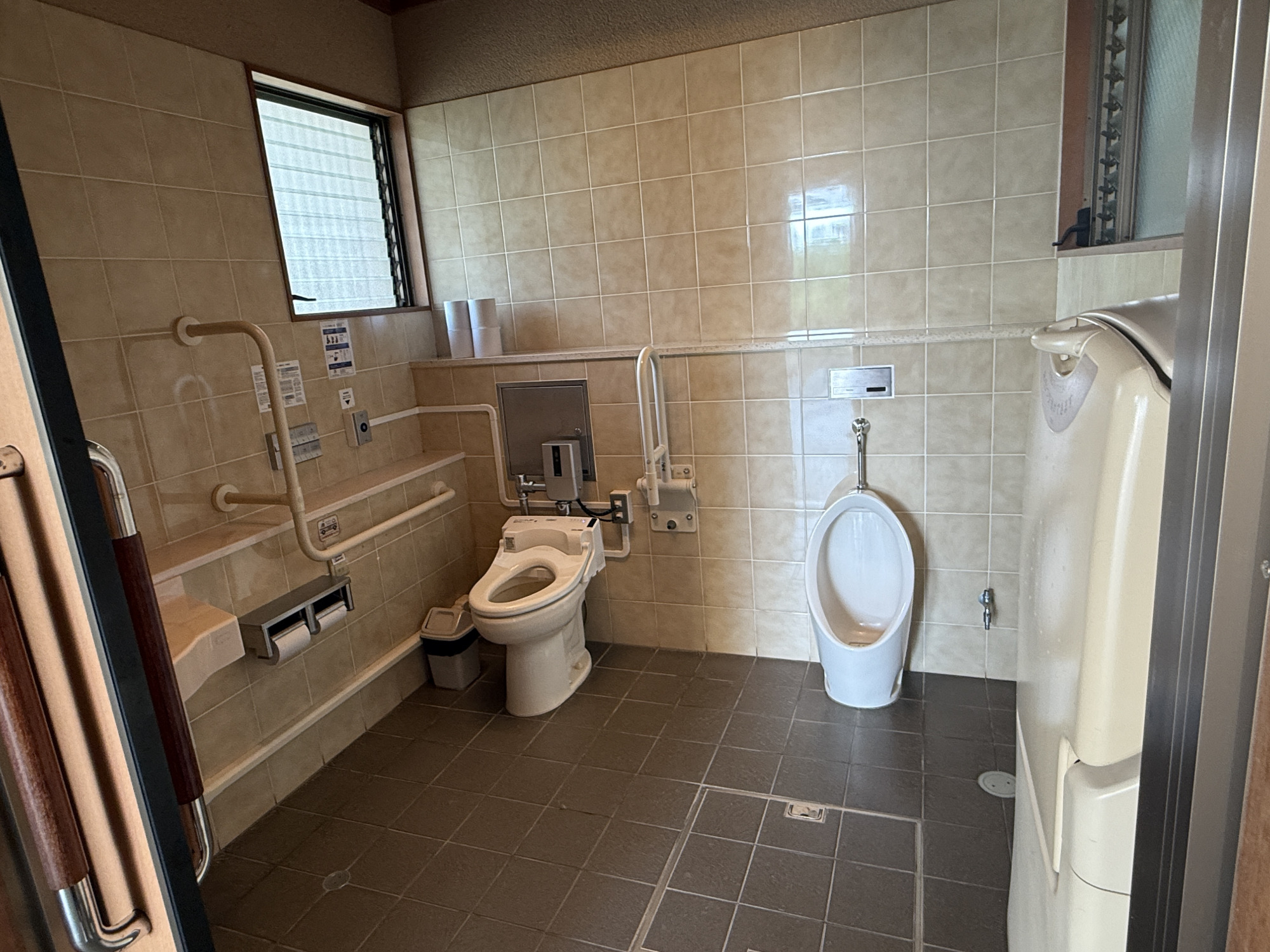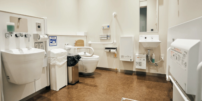 館内1階に1か所あり、ゆったりとした個室になっています。スライド式ドア、洗面台、ユニバーサルシート、オストメイト(人工肛門、人工膀胱保有者)用の設備付き。