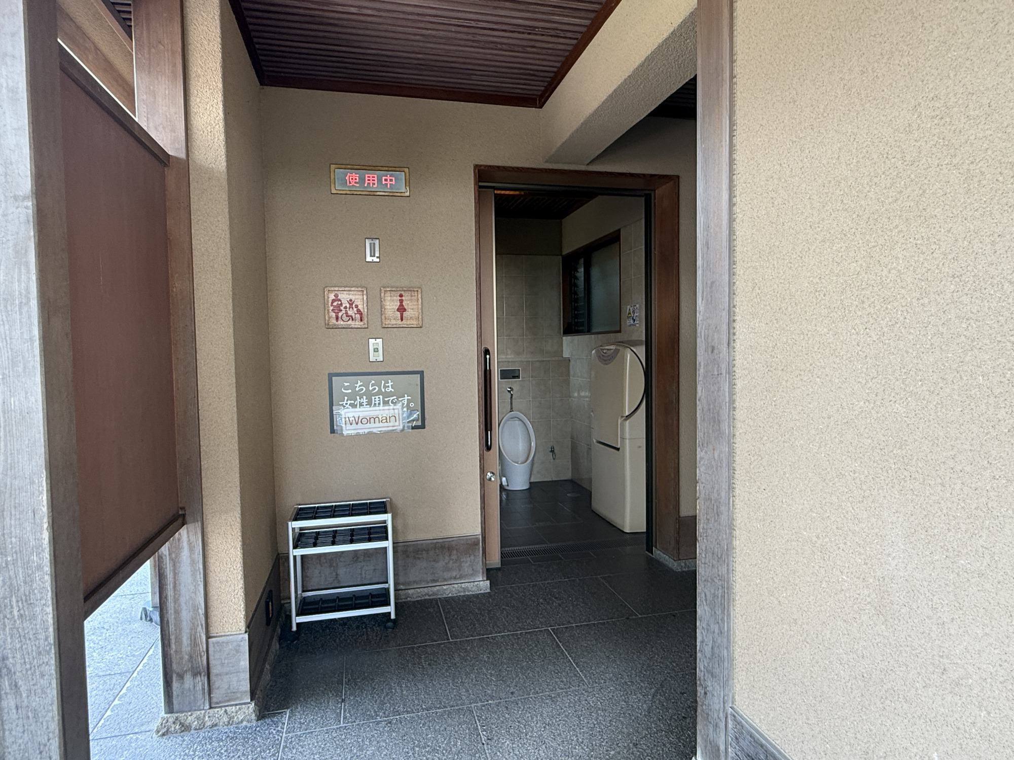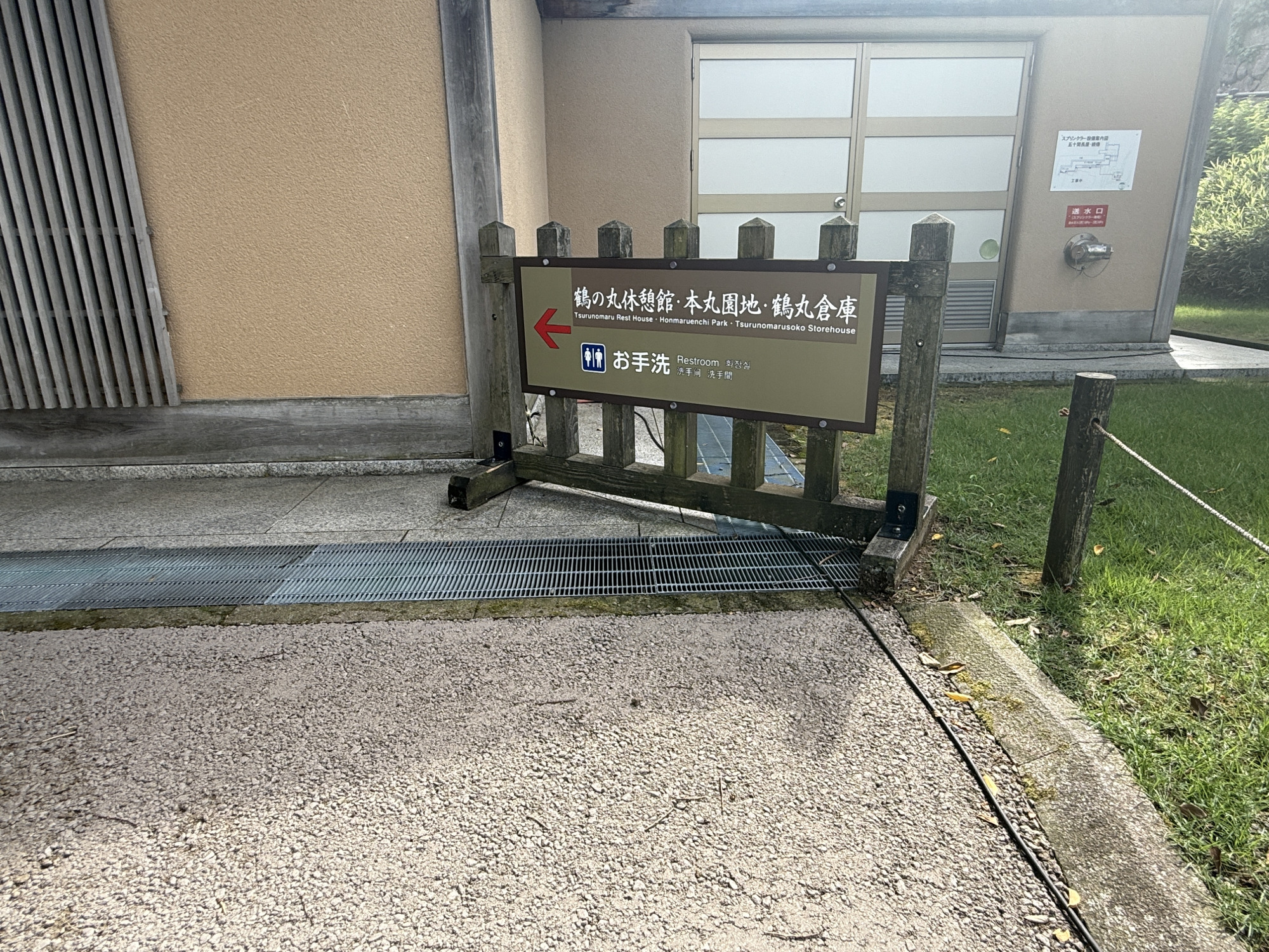 小立野口料金所では、利用者の身体状況や使用用途に応じた車椅子の貸出を行っています。すぐ近くにはスロープ付きの車椅子対応トイレも完備。園内散策のスタート地点として、特にバリアフリーを重視する方におすすめの入り口です。