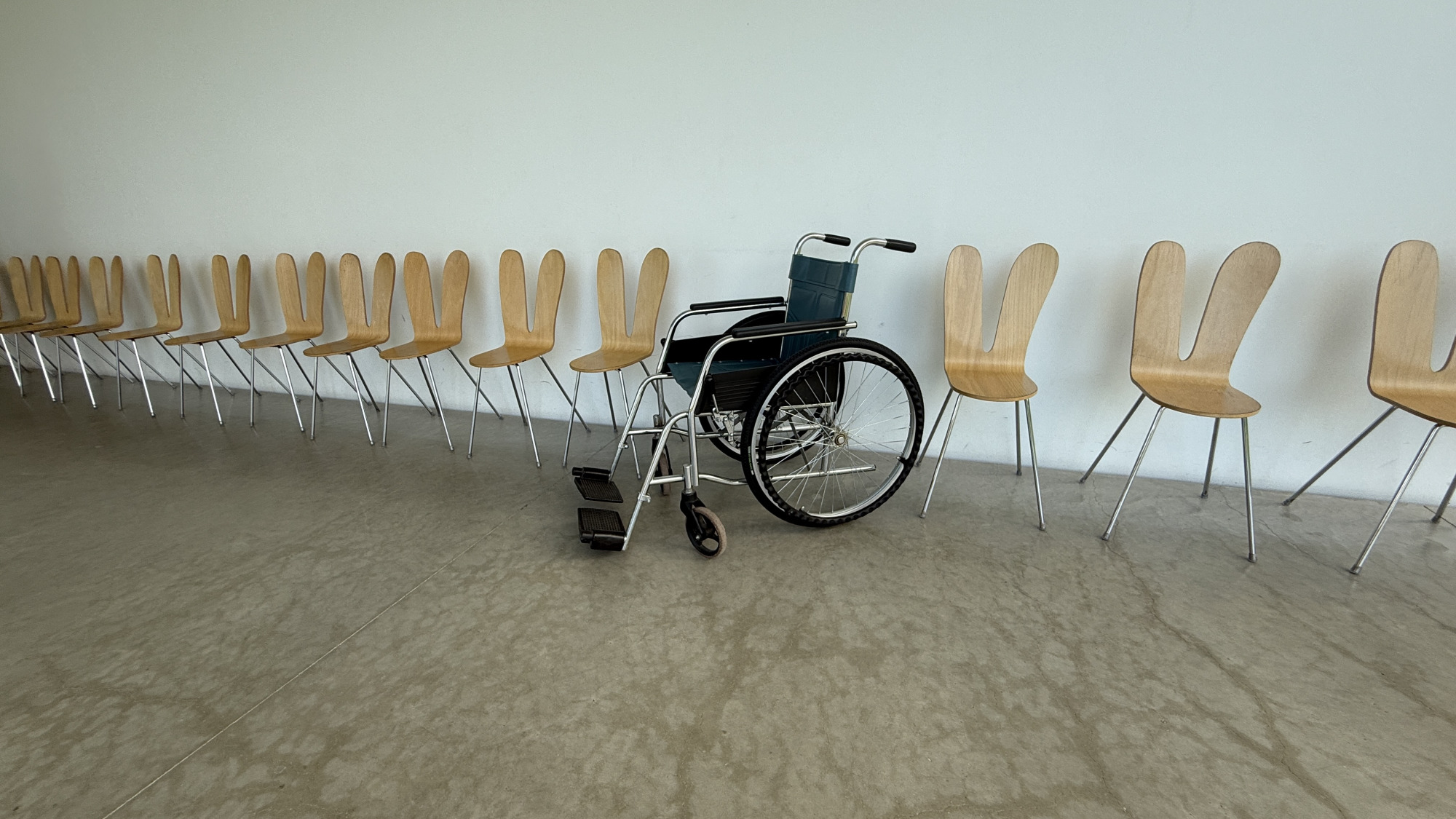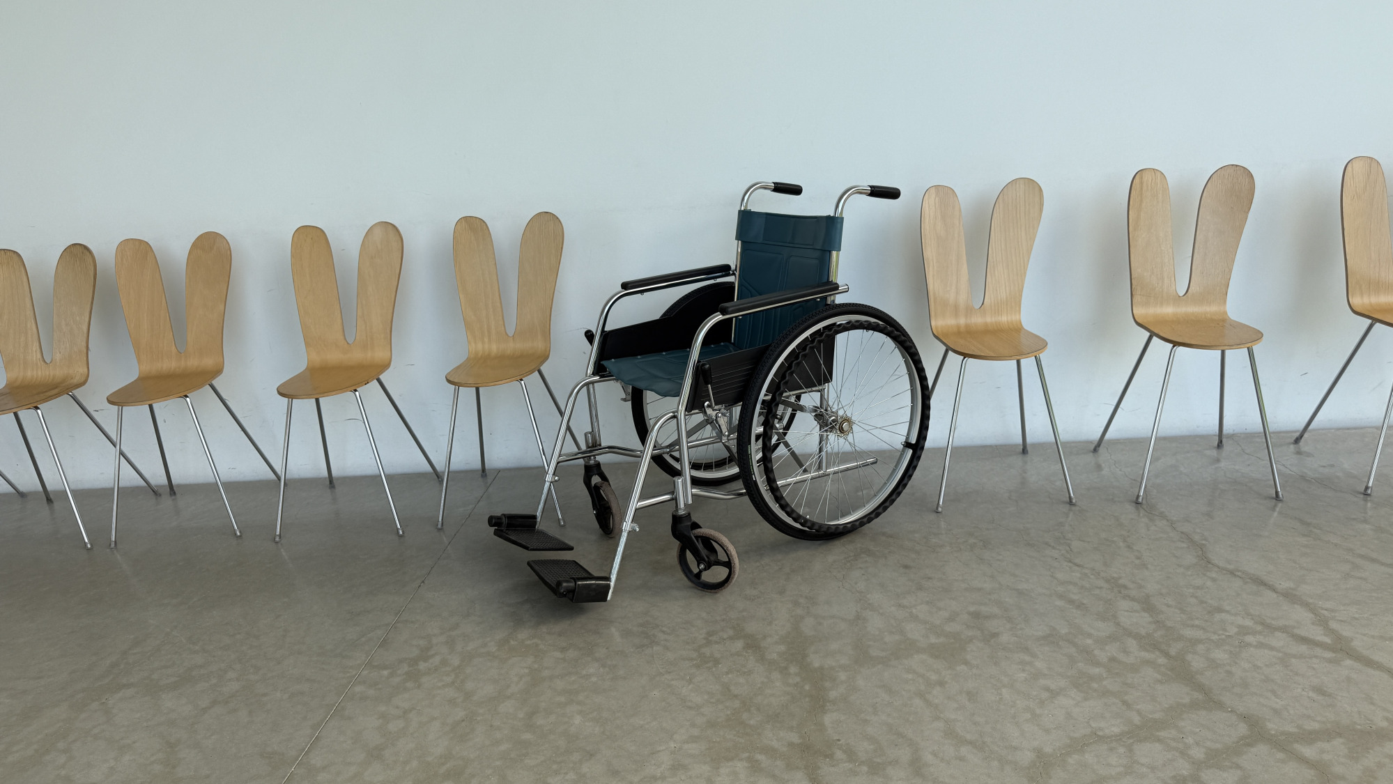 「うさぎの椅子」の愛称でも親しまれている、金沢21世紀美術館を設計した日本の建築家ユニット《SANAA》によるプロダクト。うさぎの耳のポーズをして、ハイ!パチリ。