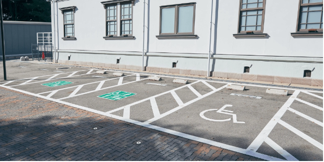 金沢市役所と金沢21世紀美術館の間の道にある『金沢市役所・美術館駐車場 』がおすすめ。身体障がい者用の駐車場は、美術館側に地下1階、地下2階それぞれ2台 設けられています。美術館の地下1階(B1F)駐車場は、地下入り口に直結。雨の日や重い荷物があるときにも便利です。