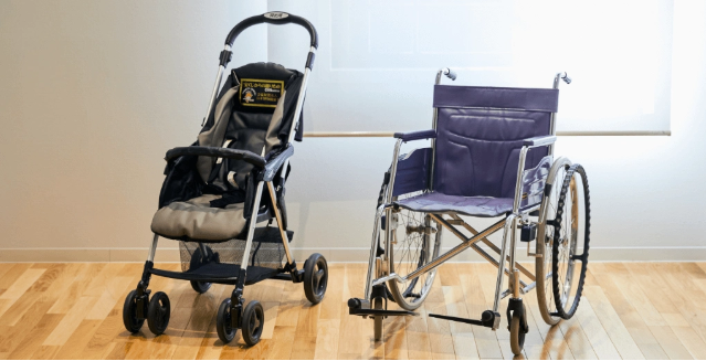 貸出用の車椅子が3台(介護者が必要)、ベビーカーが1台あります。ご利用される方は1階で受付してくださいね。