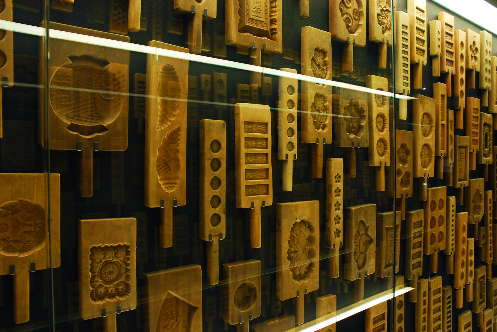 森八本店の2階には、茶寮のほかに「金沢菓子木型美術館」が併設されています。ここでは、江戸時代から使われてきた落雁や金花糖の木型約1000点以上が展示されており、鶴や亀、花々、巨大な鯛の木型など、加賀の菓子文化の豊かさを視覚的に楽しめる空間です。