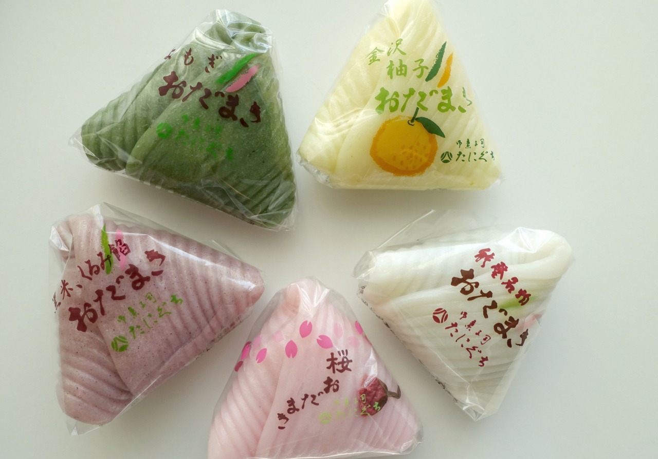 ほかに、桜や柚子、栗など、旬の食材を使った季節限定品がシーズンごとに登場し、常時5種類が揃います。その華やかさは、金沢の五色生菓子にも負けていません!