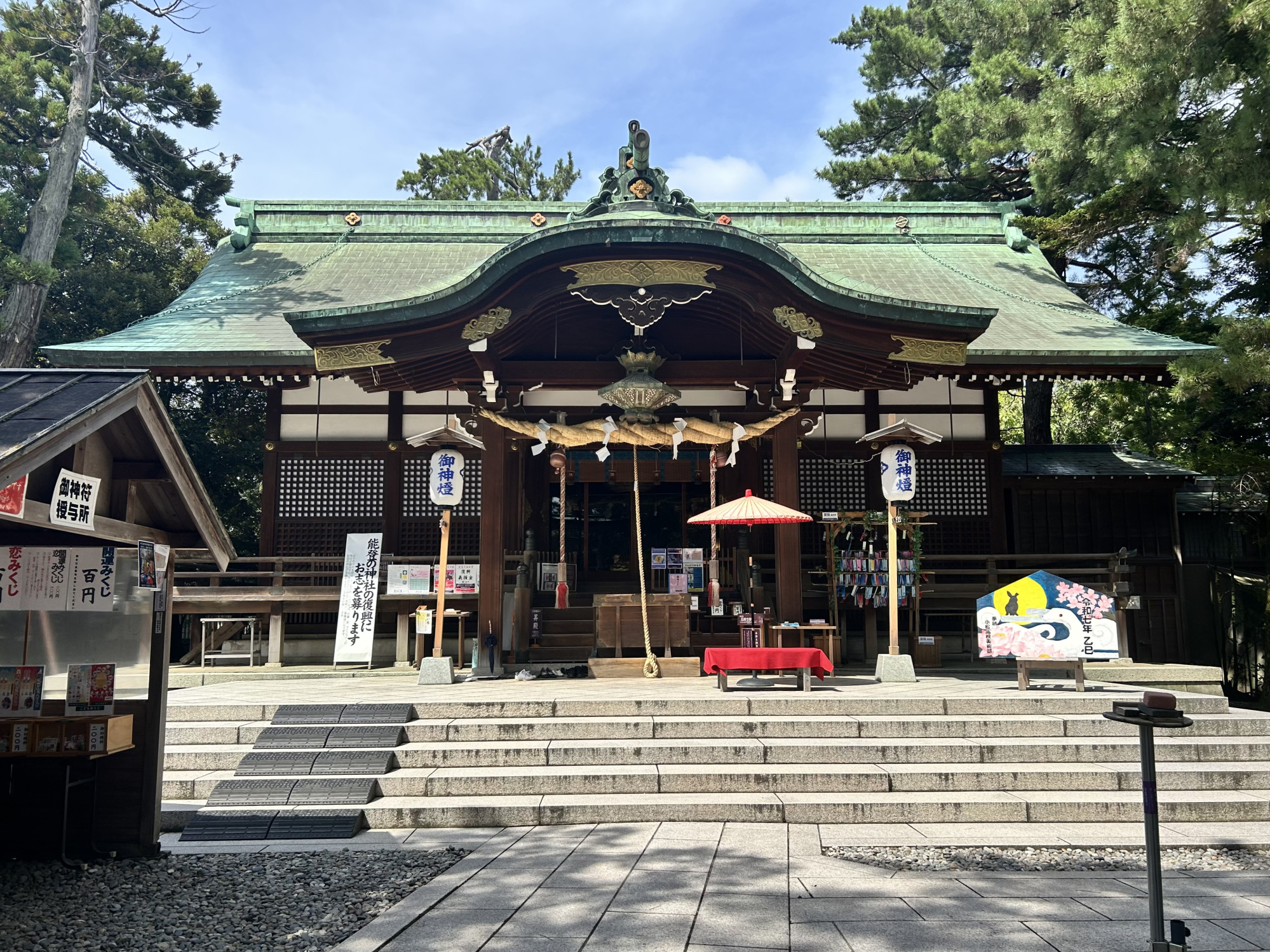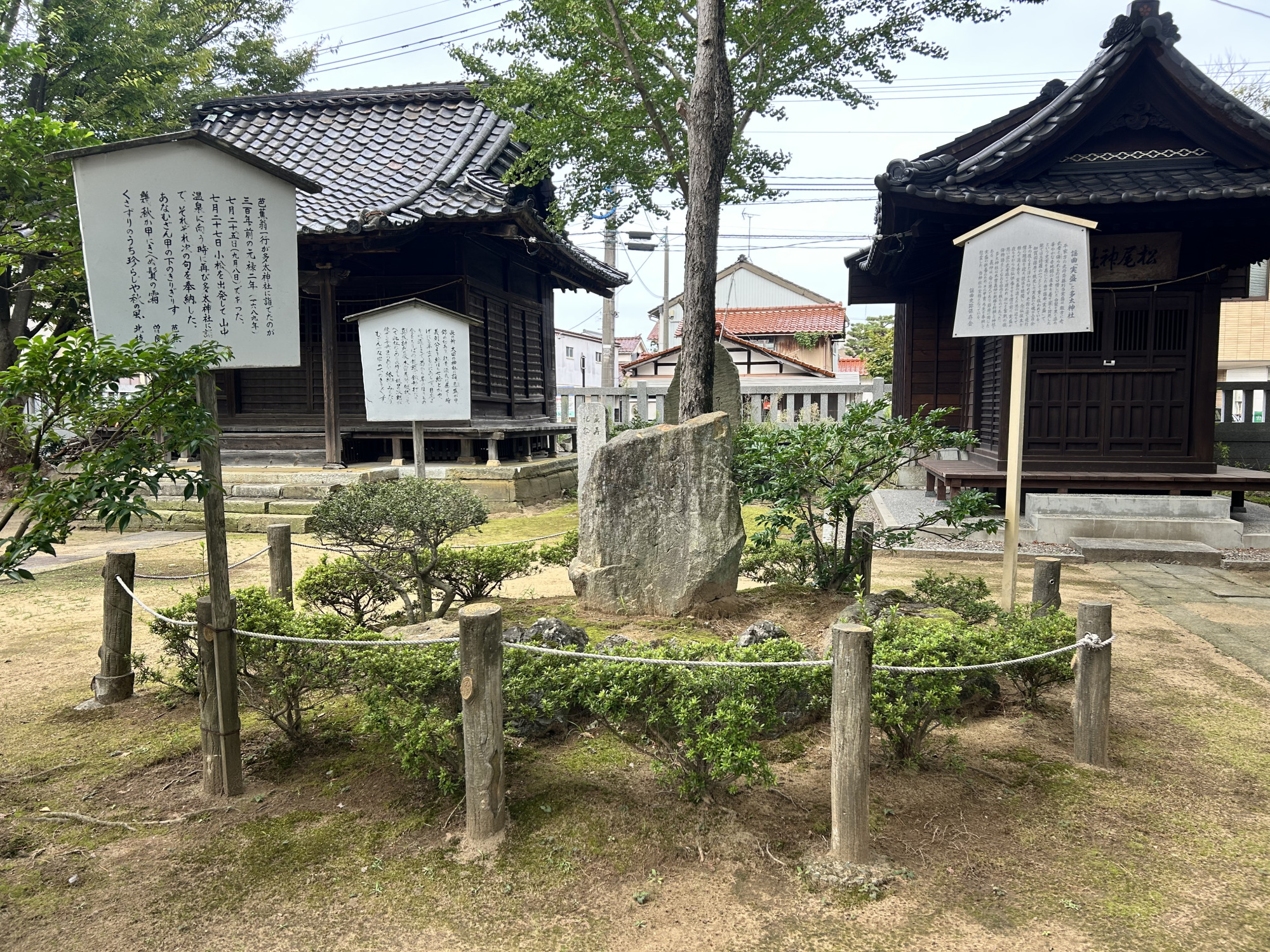 元禄2年(1689年)、松尾芭蕉が再び小松を訪れた際に立ち寄った神社でもあります。芭蕉はこの神社に句を奉納したいと強く望みましたが、当時のしがらみや状況により実現することは叶いませんでした。