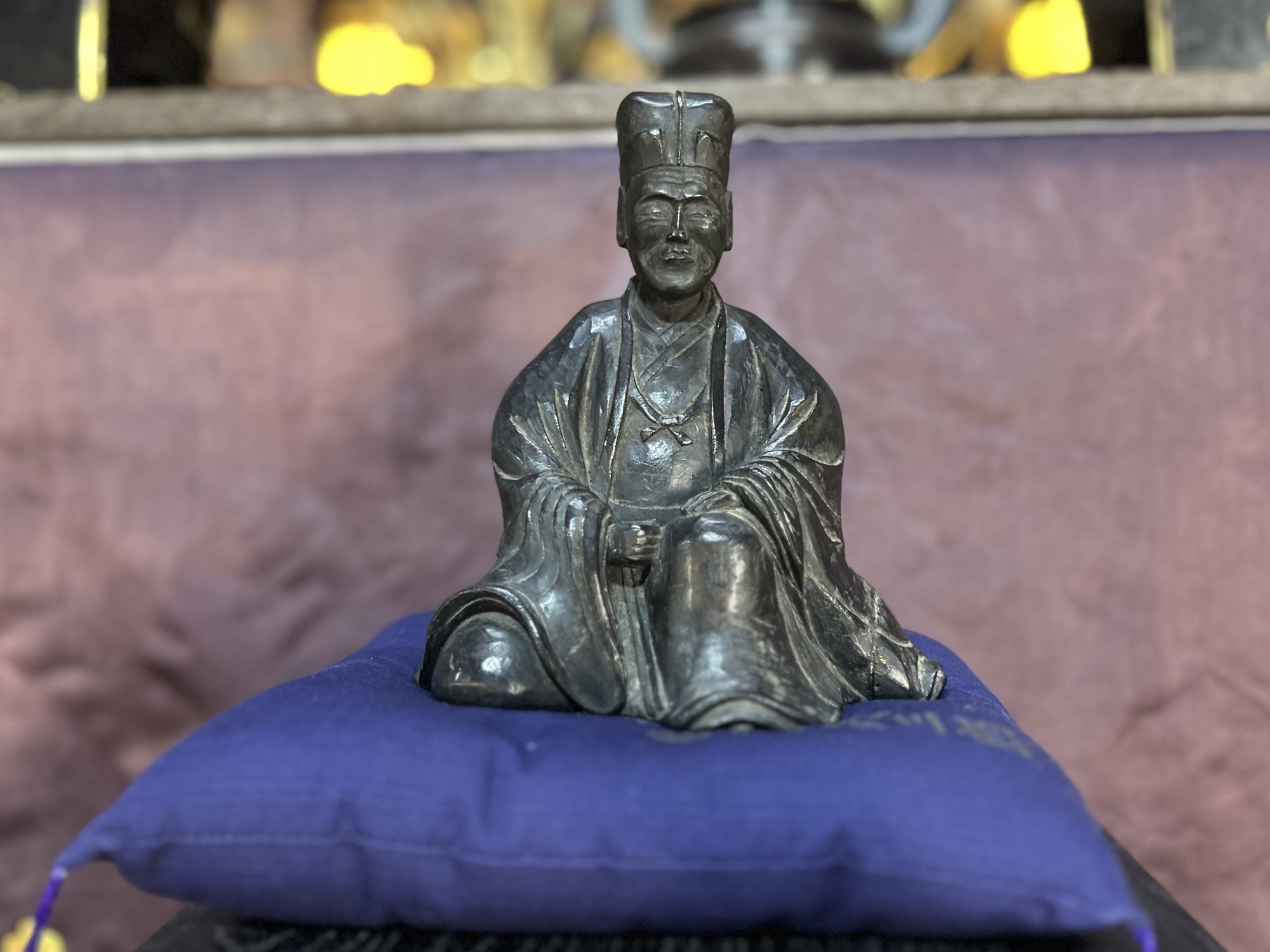 そのほかにも、甲冑が奉納された際に記された寄進状や、実盛の亡霊を供養するための位牌などを見ることができ、見学の際には「實盛之兜保存会」の会長が、さまざまな逸話を交えながら丁寧に解説してくださいます。