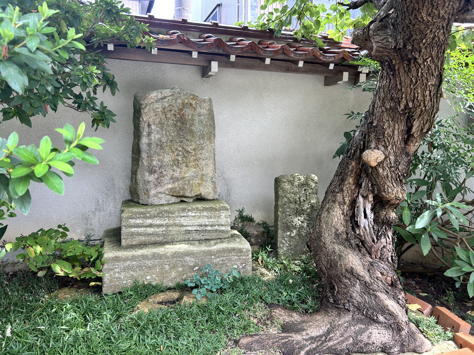 菟橋神社を出発し、安斎橋を渡ってまっすぐ進むと、住宅街の一角にひっそりと佇む寺院「建聖寺」があります。